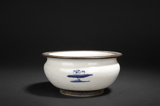 THREE BLUE AND WHITE BOWLS    清 青花花卉香炉一组