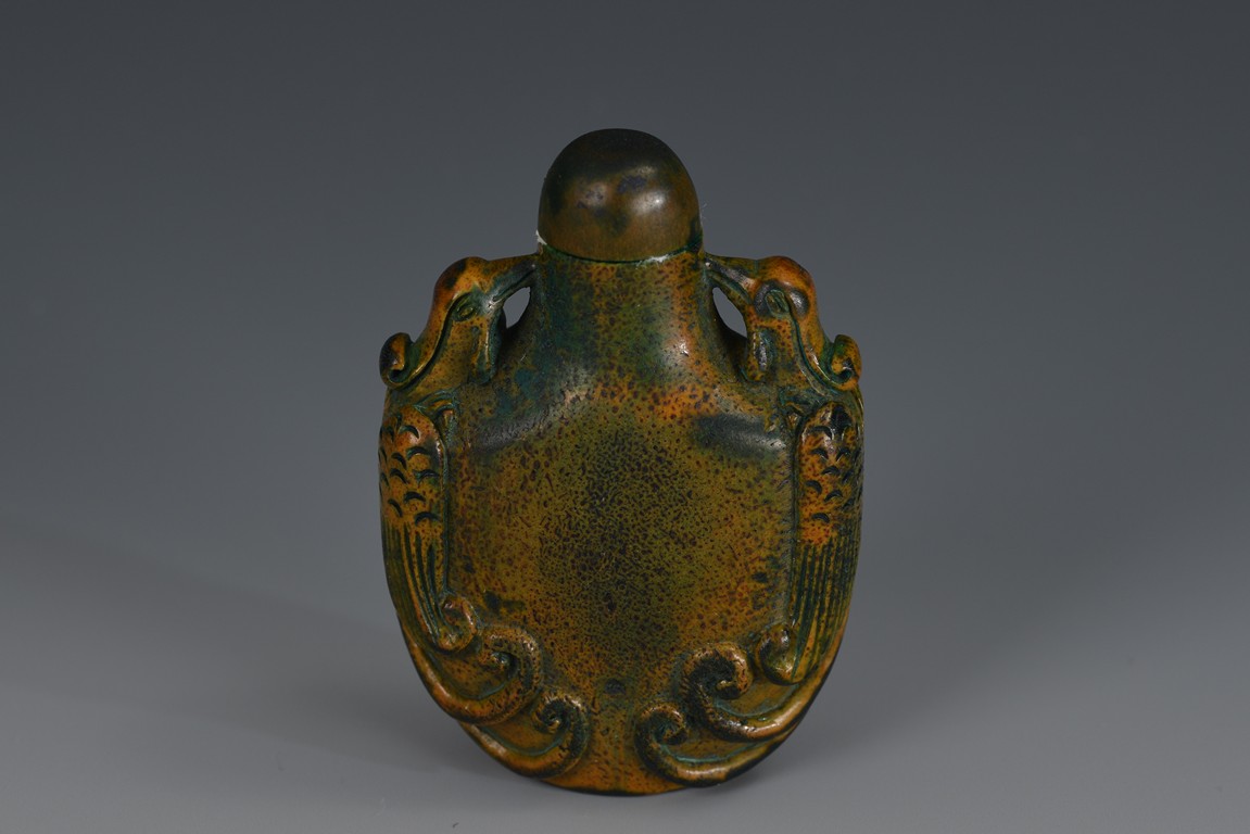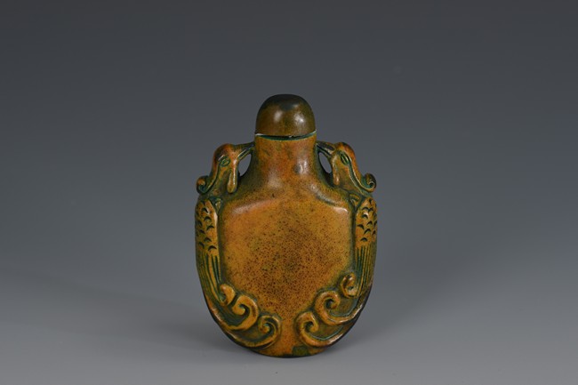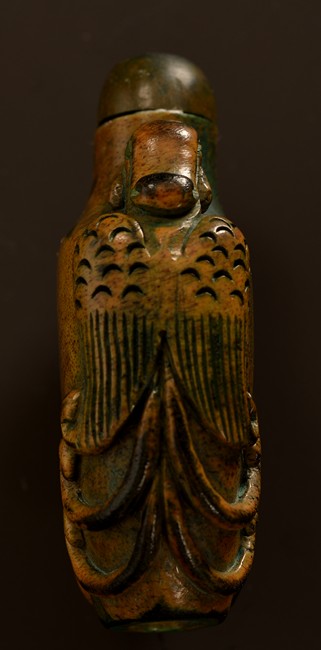 A CARVED HORN SNUFF BOTTLE 民國 角雕對鳳紋鼻煙壺