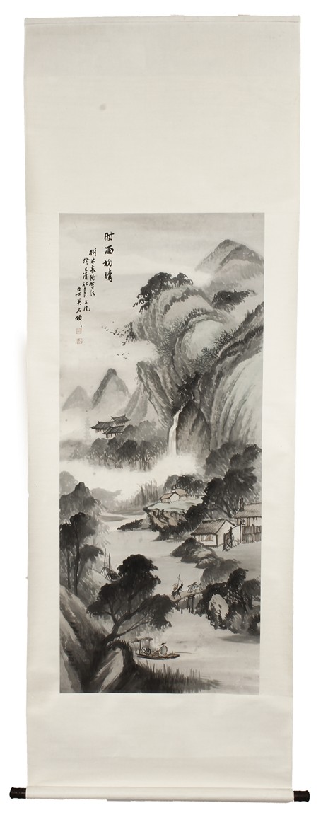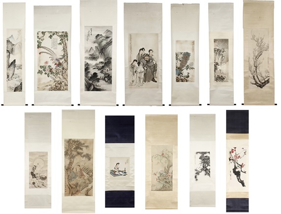 A SET OF 13 INK AND COLOR ON PAPER PAINTINGS 水墨畫一組十三幅