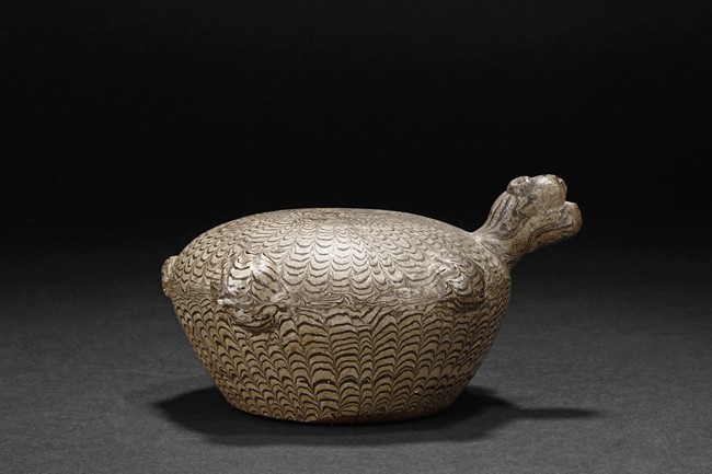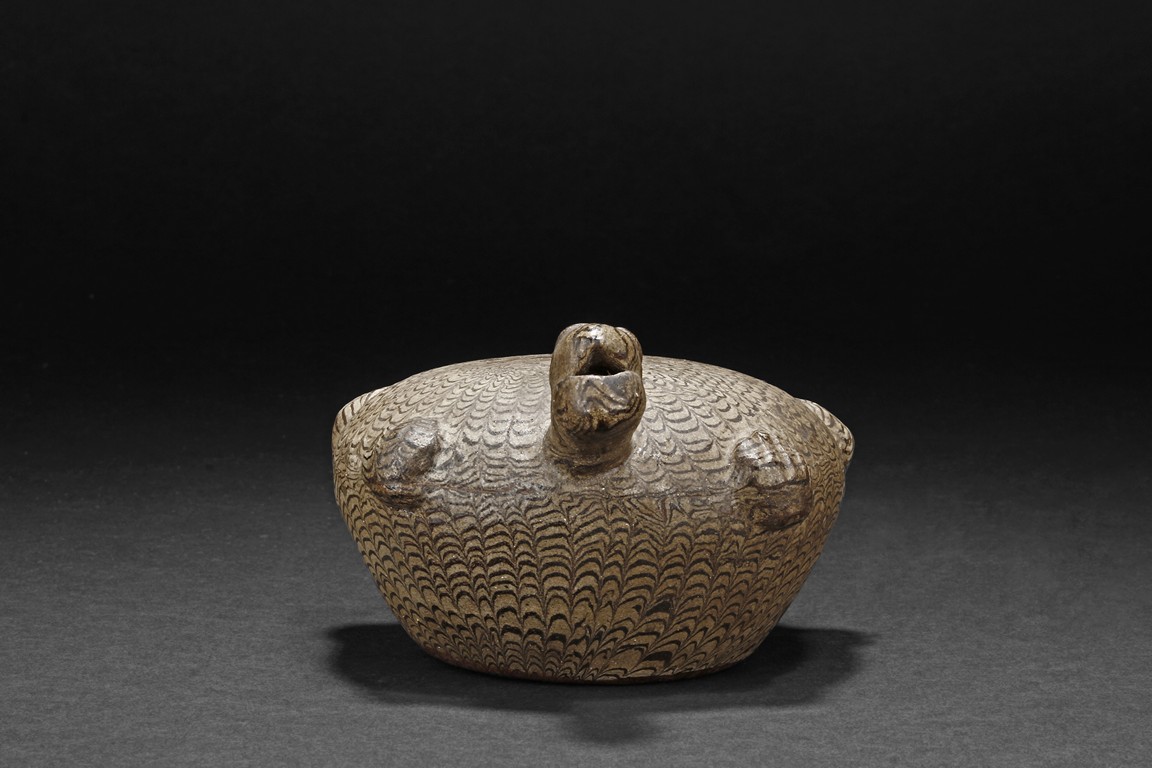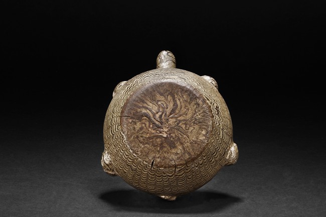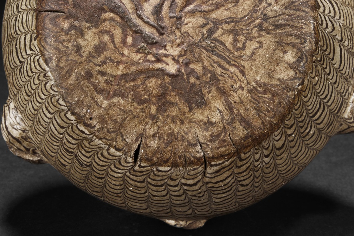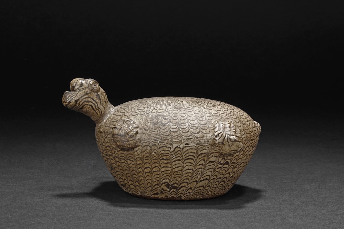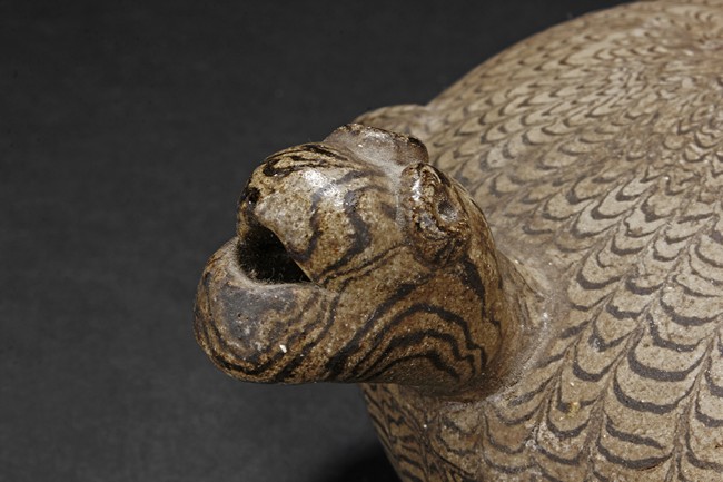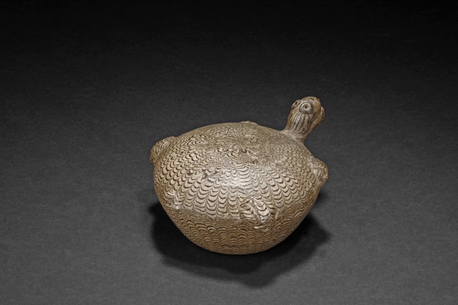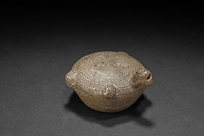 The porcelain water drip in the form of a turtle, the body and shell of water drip patterns, the four short legs extending out from the sides, with the head raised high and open mouth. Early Qing Dynasty period.