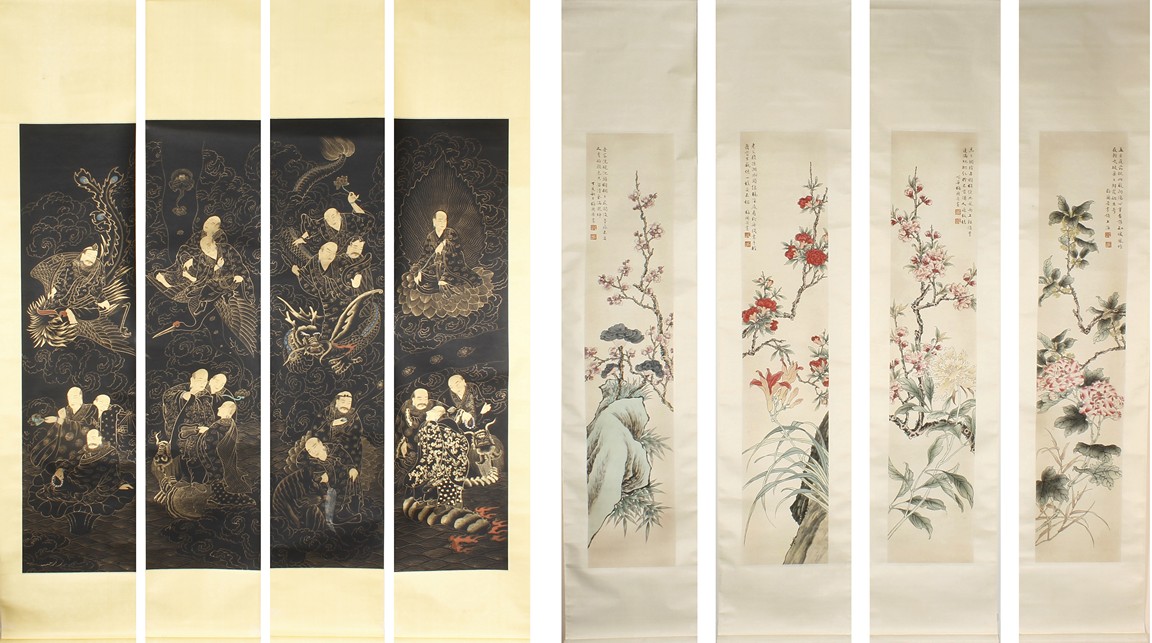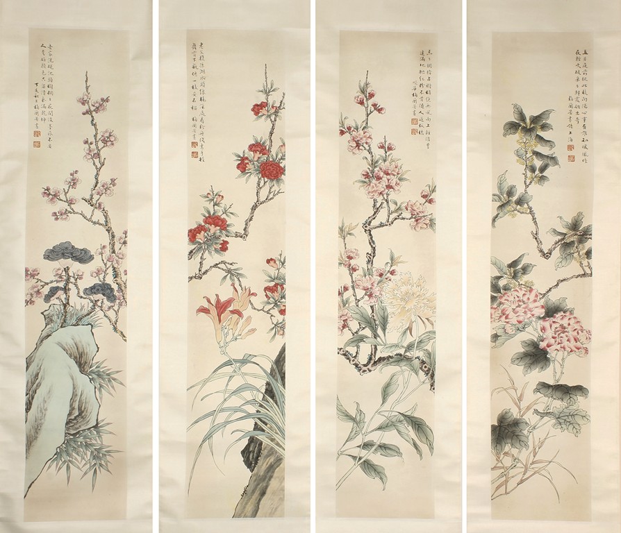 A SET OF EIGHT PAINTINGS 中國畫花卉、人物一組