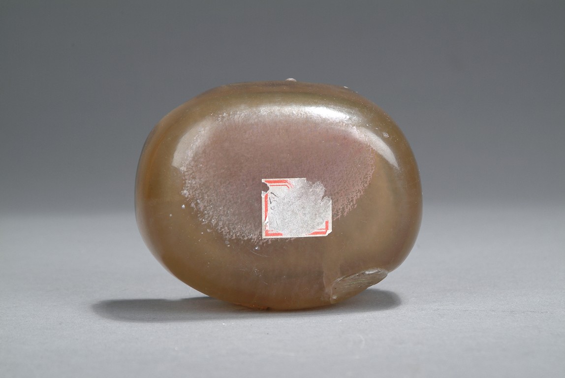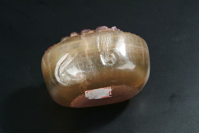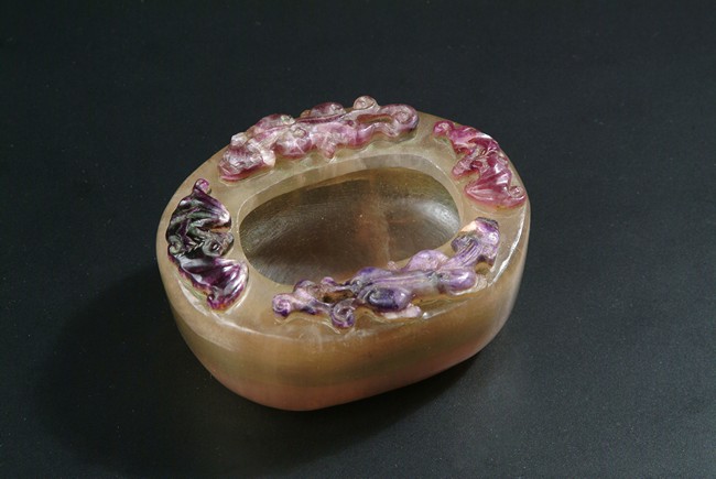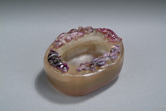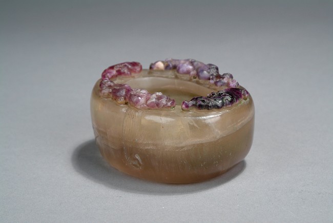 Of honey tone, the well hollowed washer is decorated with two bats and two Chilong on the top edge, each with different color. Qing Dynasty period.