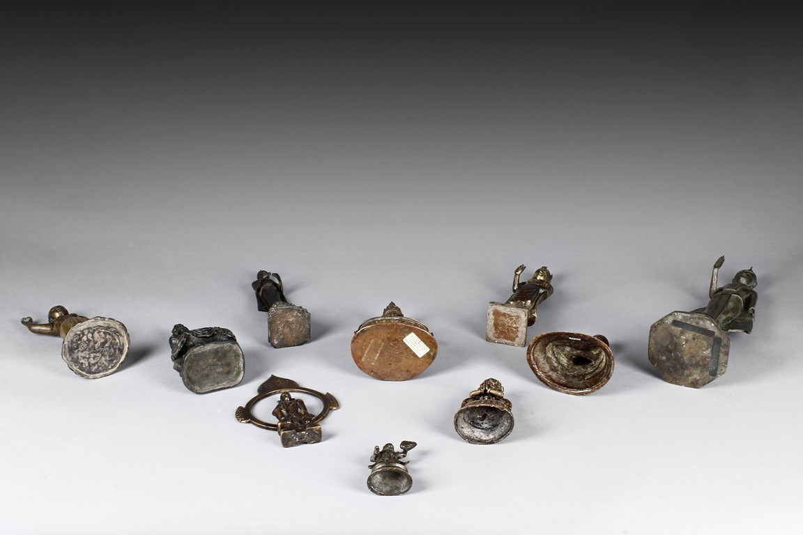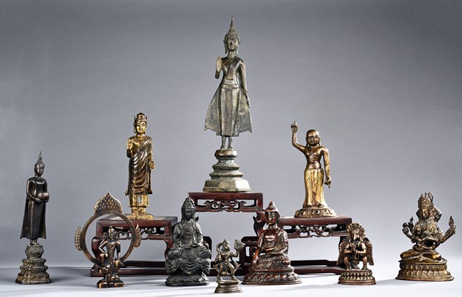 This set includes ten bronze Bodhisattva statues of various types, including standing statues of southeast Asian origin, seated statues of Tibetan origin, seated statues of Indian origin, and of Chinese origin.
