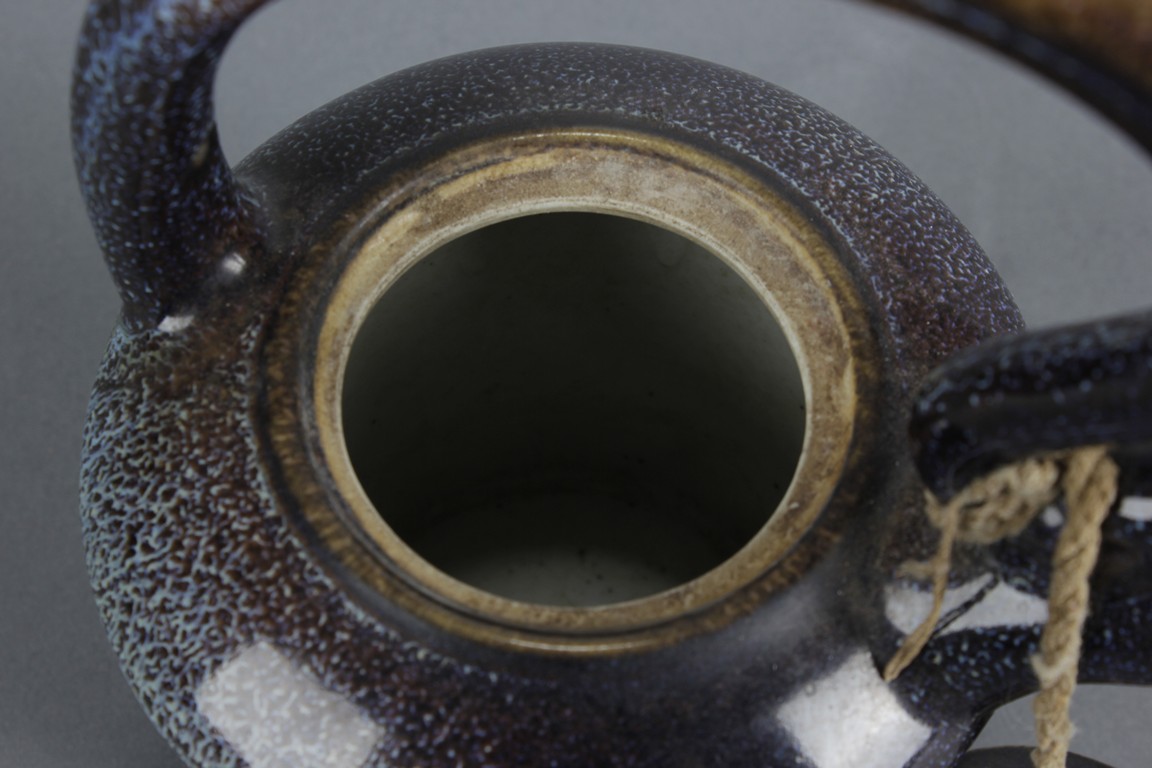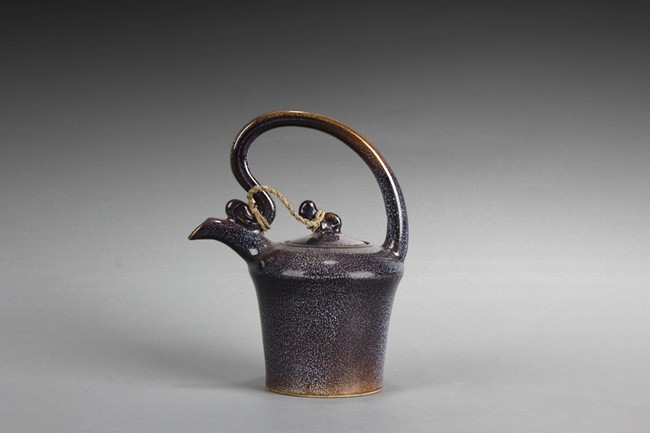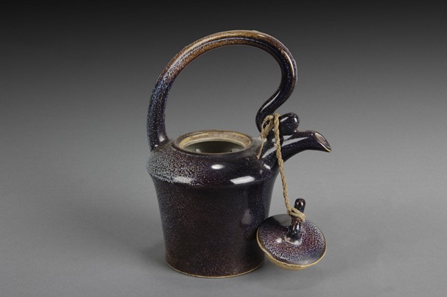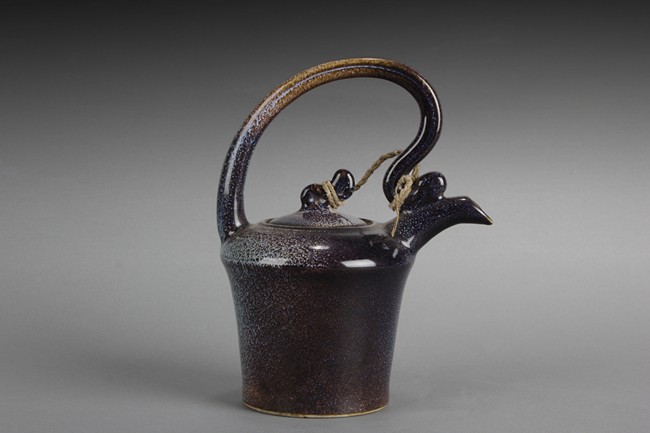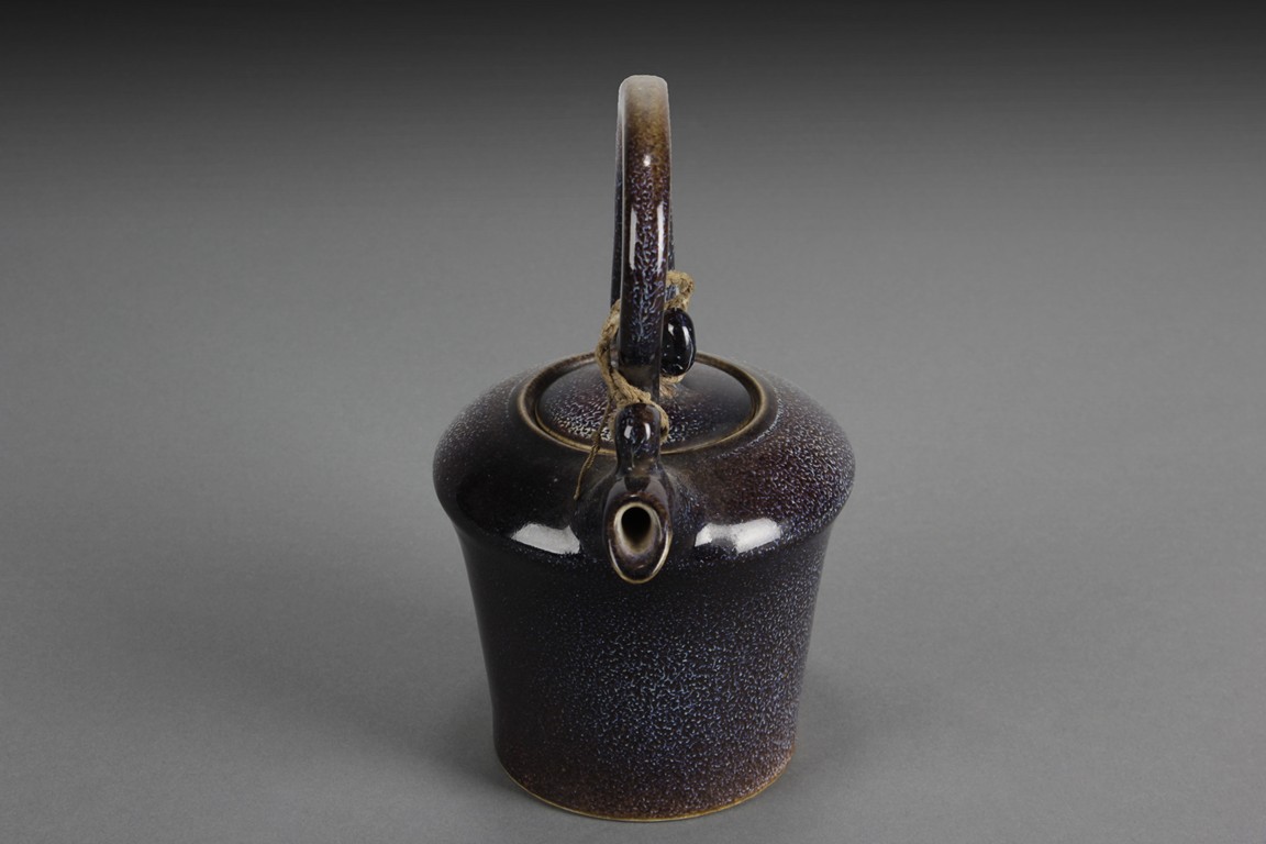 A fine'Junyao' ceramic glazed teapot with arch handle on top connecting the body and the spout, body of globular form. Qing dynasty.
