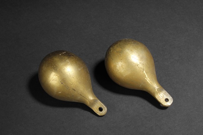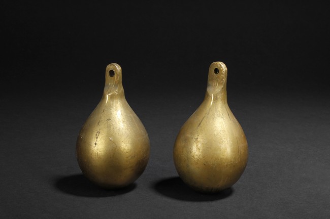 TWO BRONZE BALANCE WEIGHTS 西洋鎏金大鐘砣