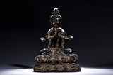 A PAINTED AND GLAZED ZISHA SHAKYAMUNI FIGURE