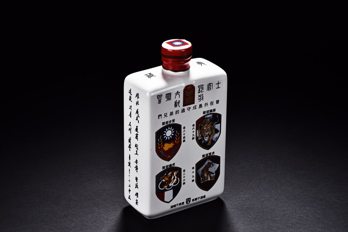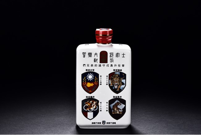 此酒為紀念金門砲戰五十週年,特別為當年參戰國軍官兵所產之紀念酒,值得收藏。來源:由原國軍少將陳先生提供
