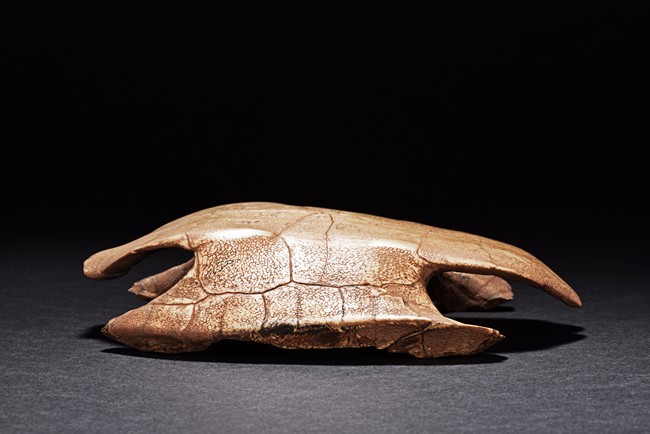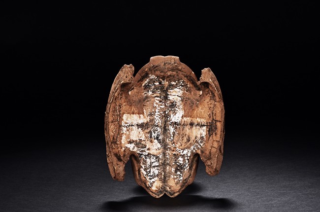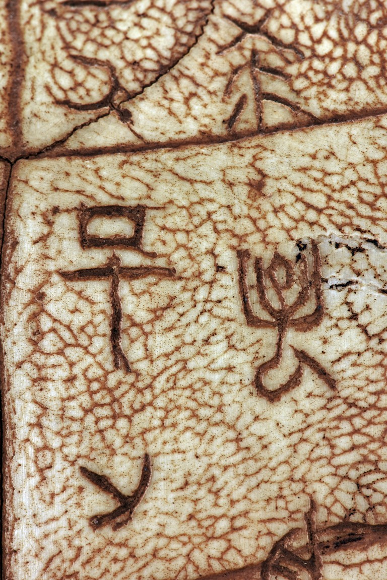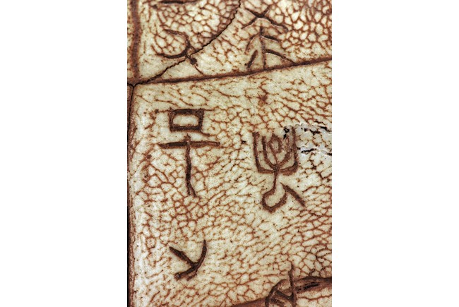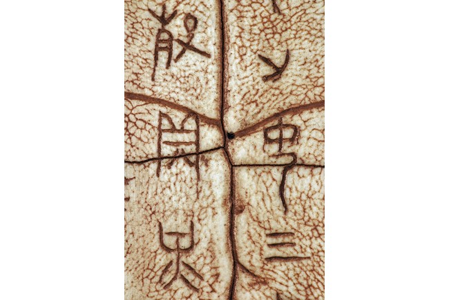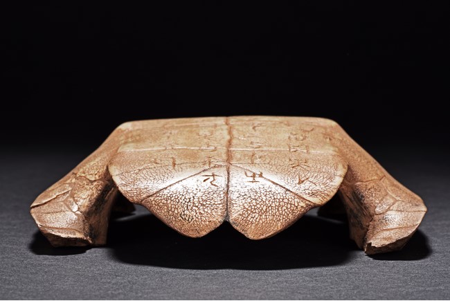 The turtle shell oracle bone is inscribed with 30 ancient characters.
