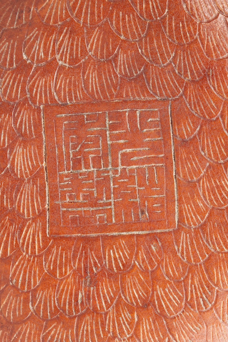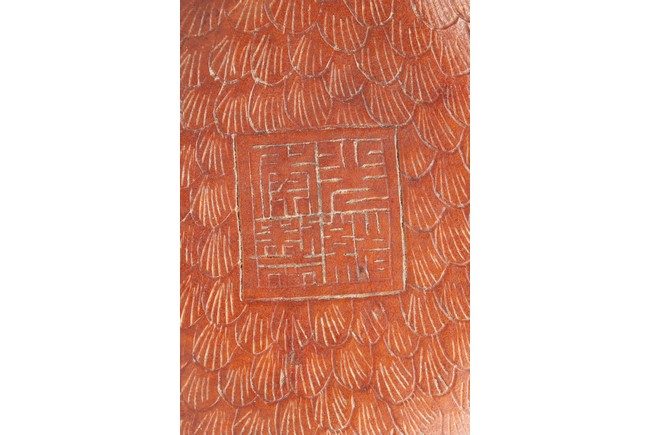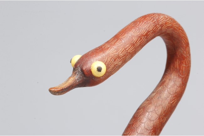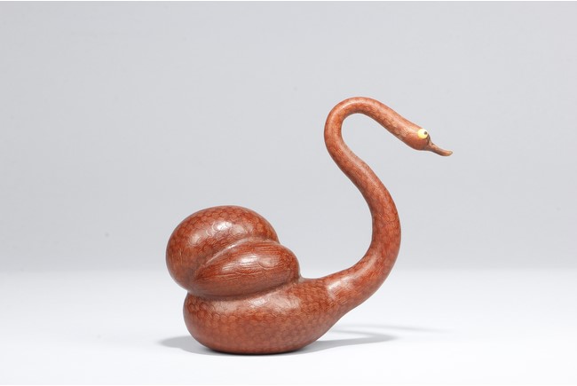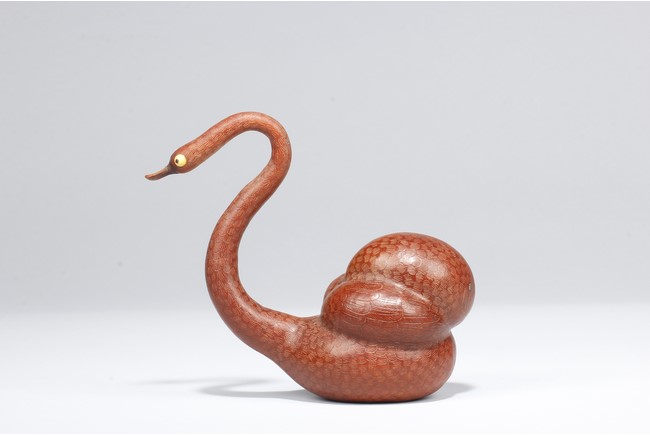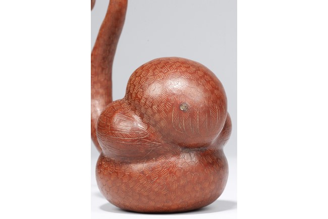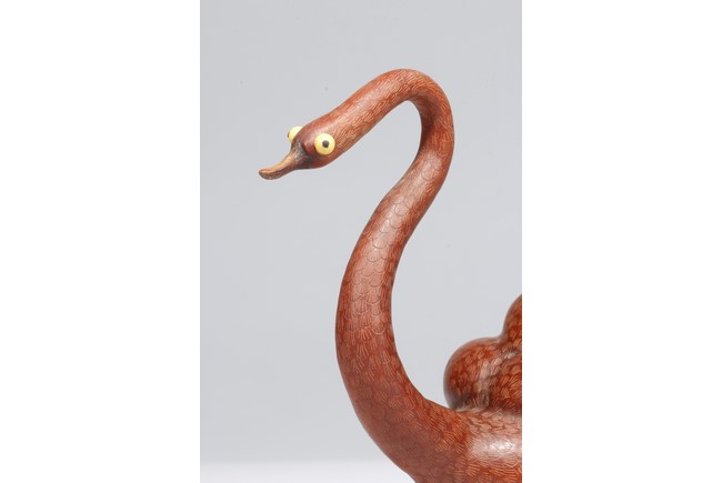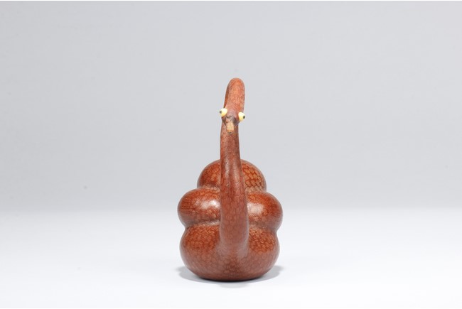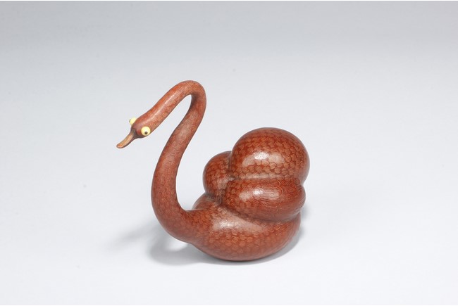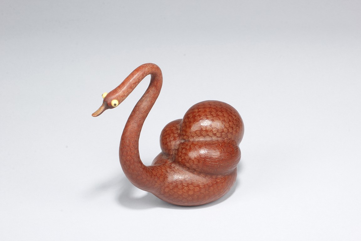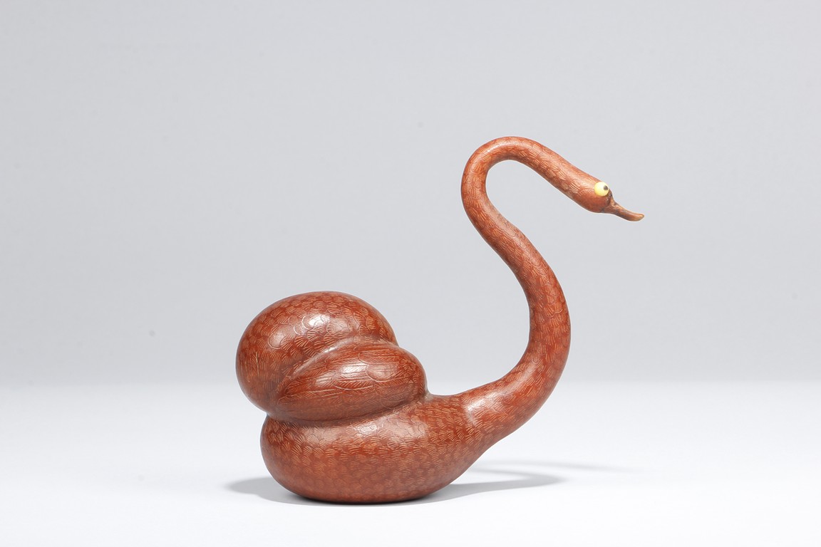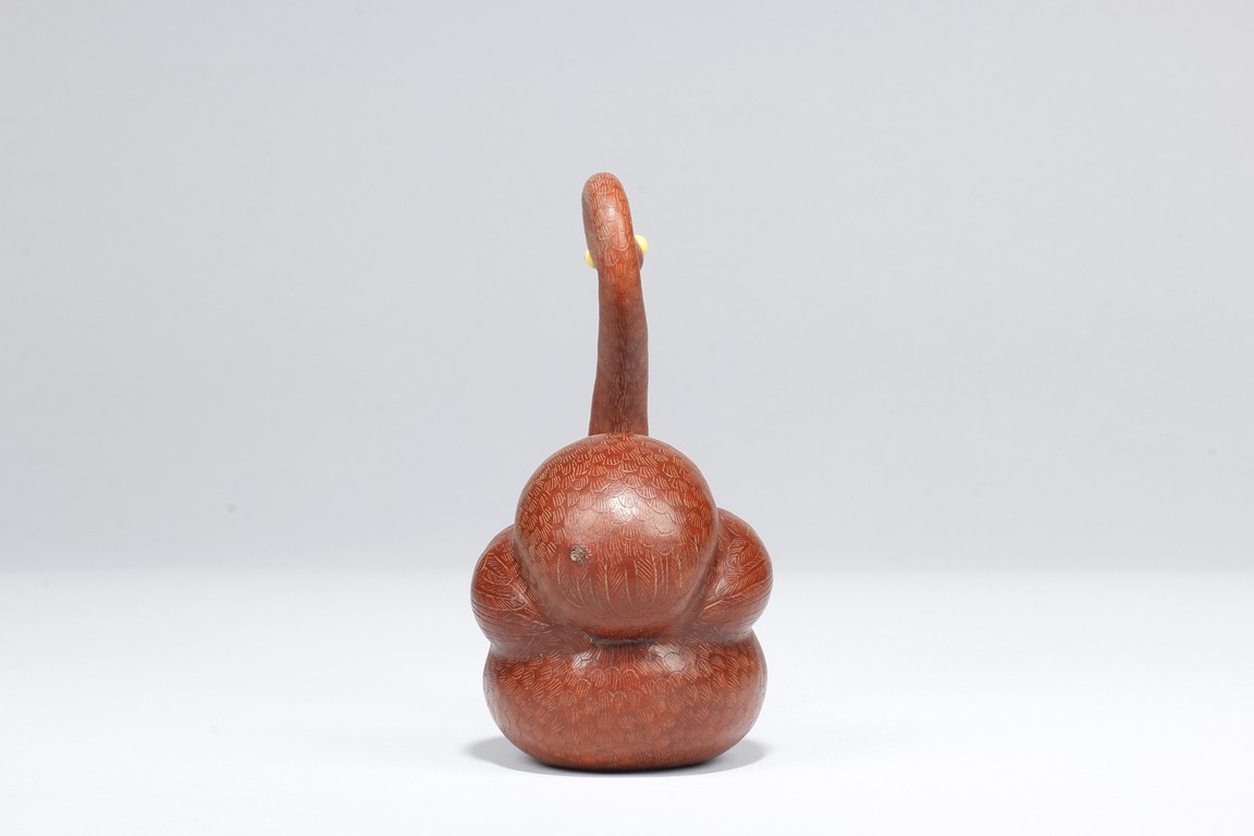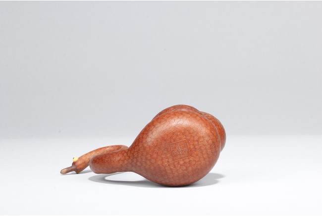The purplish red goose naturalistically made out of a bottle gourd. Republic period.