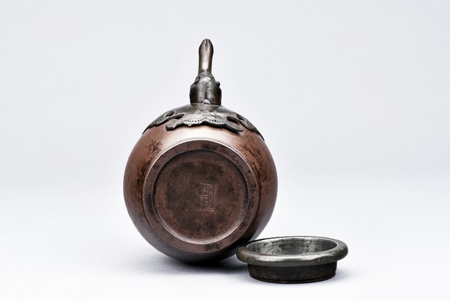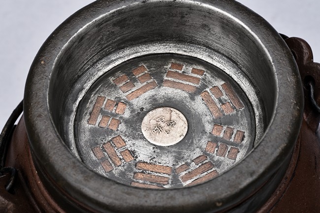 此八卦壺蓋嵌早期香港五仙錢幣 由洛杉磯Johnny Lau提供