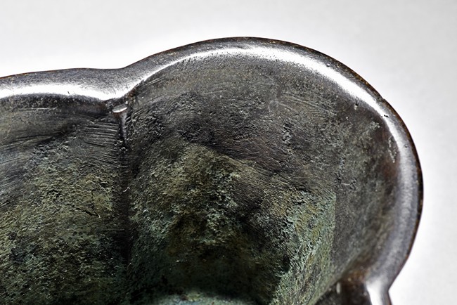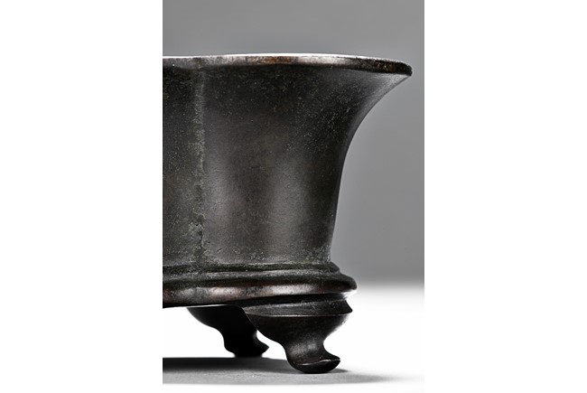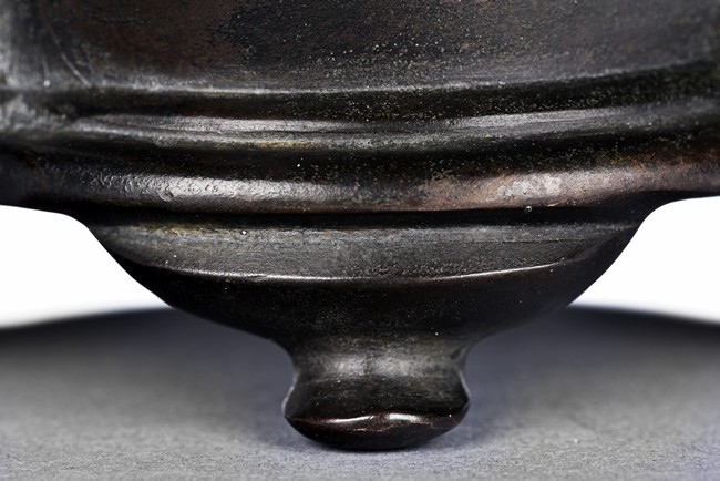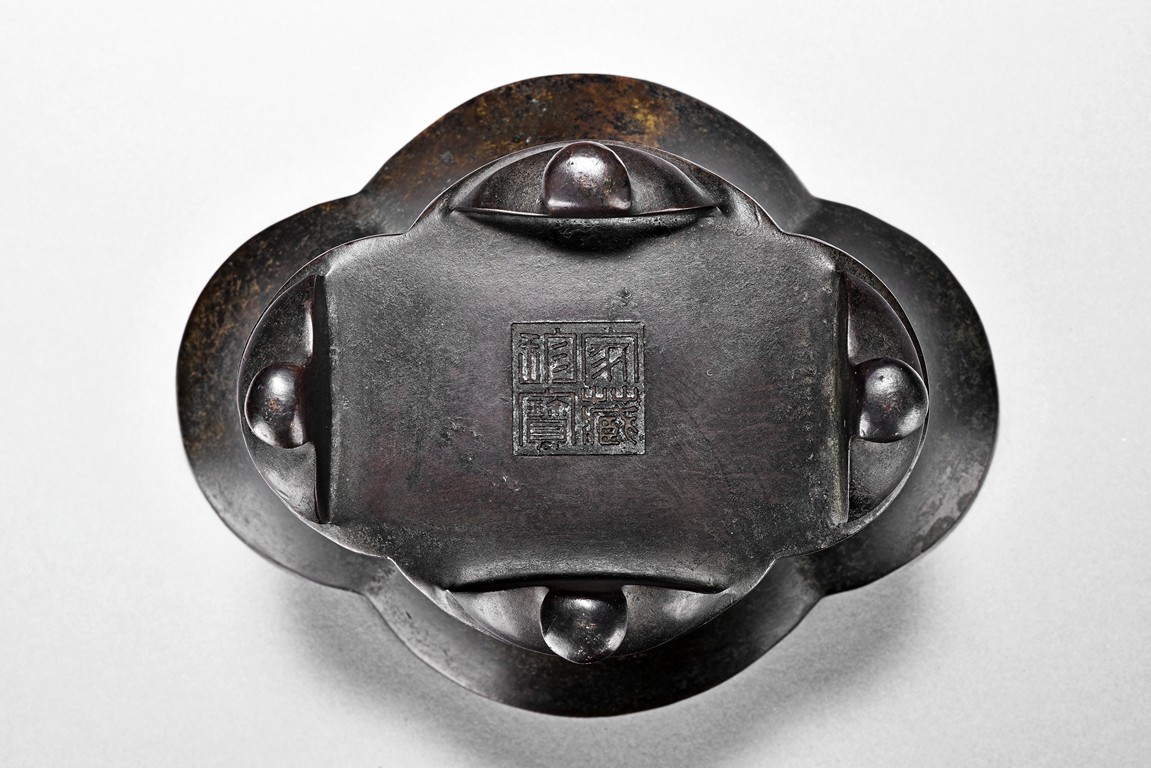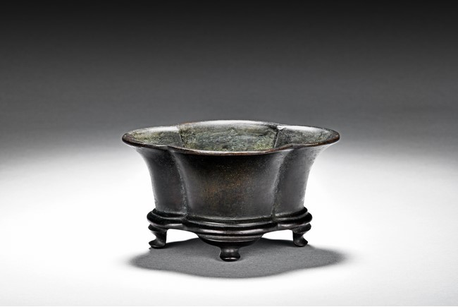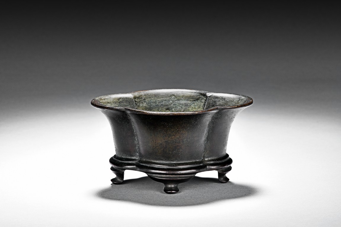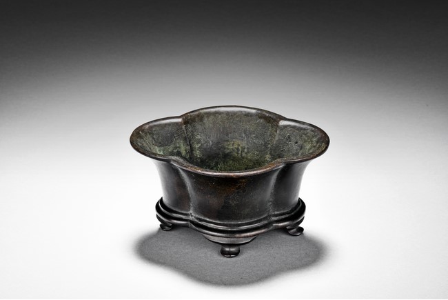 Of narcissus shape with four leaves, the censer is supported with four feet, the bottom bears four character 'Jia Bao Zhen Cang'. Qing Dynasty period.