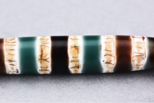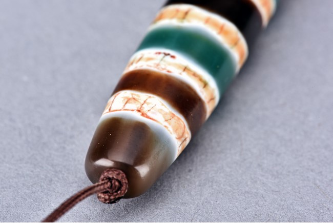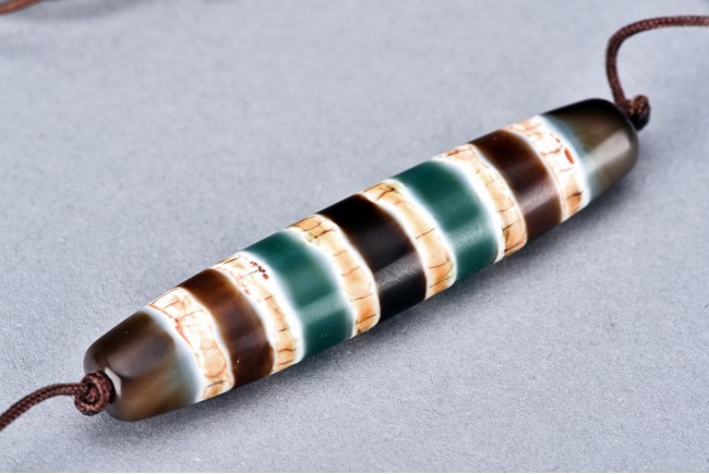 在藏人眼中, 天珠不是人間之物,而是一種具有神秘力量的珍貴珠寶,能夠供養天珠會擁有很大的福報。此次拍賣彩色六線天珠經專家鑒定產地為南亞。其獨特彩色紋路極其稀有,線條清晰, 無論在民間收藏或博物館,均極其罕見。配戴此線珠可使人一世亨通,使運勢由惡轉吉,凡有所求,皆如人意。