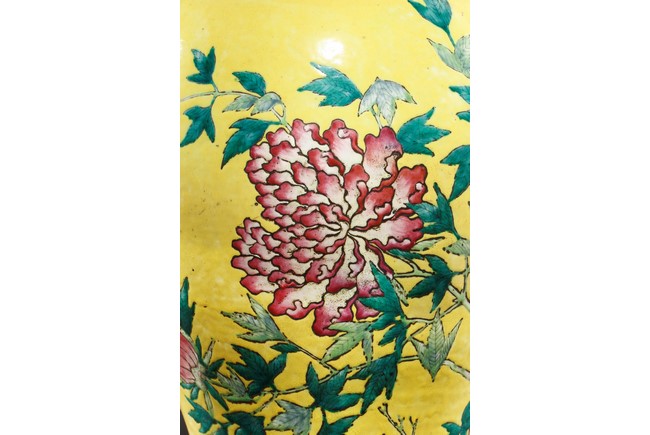 此大花瓶畫工精細,佈局合理,所畫牡丹生動可愛,栩栩如生,為清代富貴人家所藏