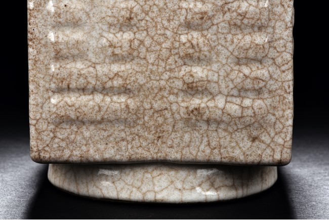 Of rectangular cong form, each side moulded in relief with bagua pattern, with fine crackles on the surface.