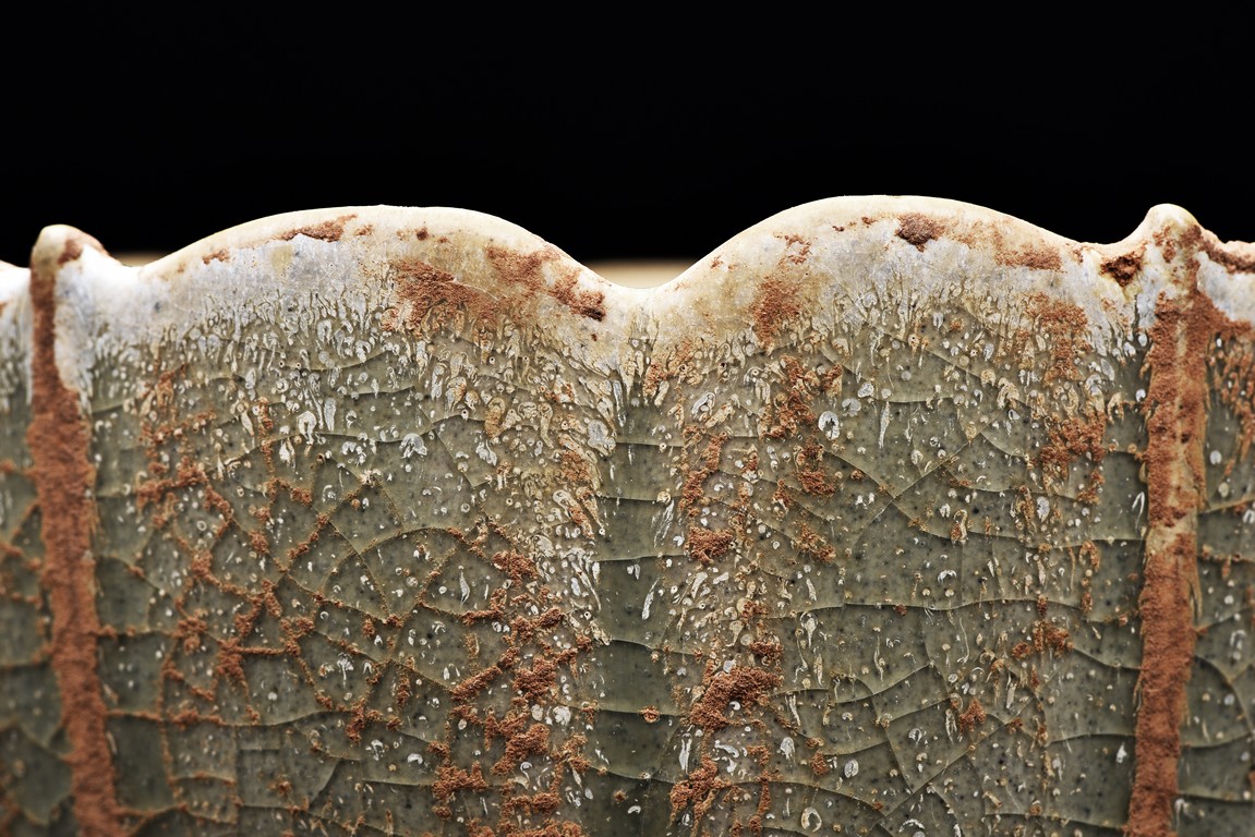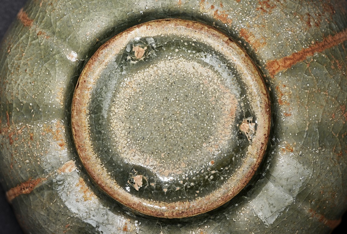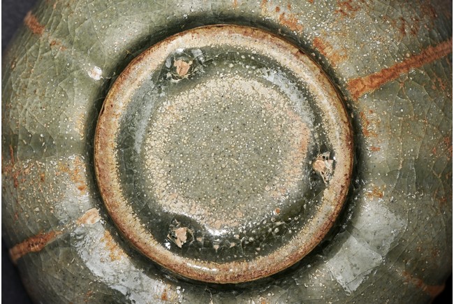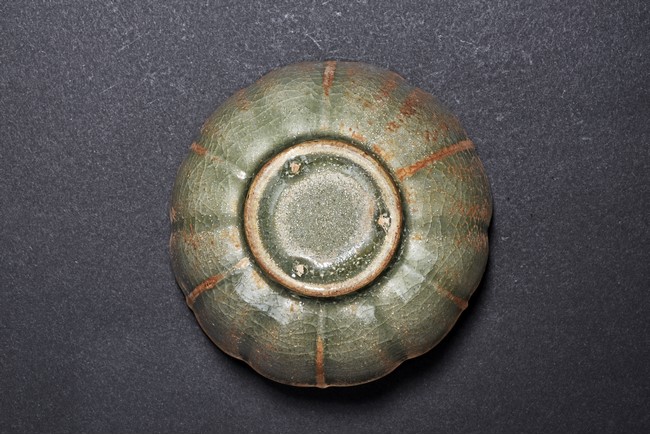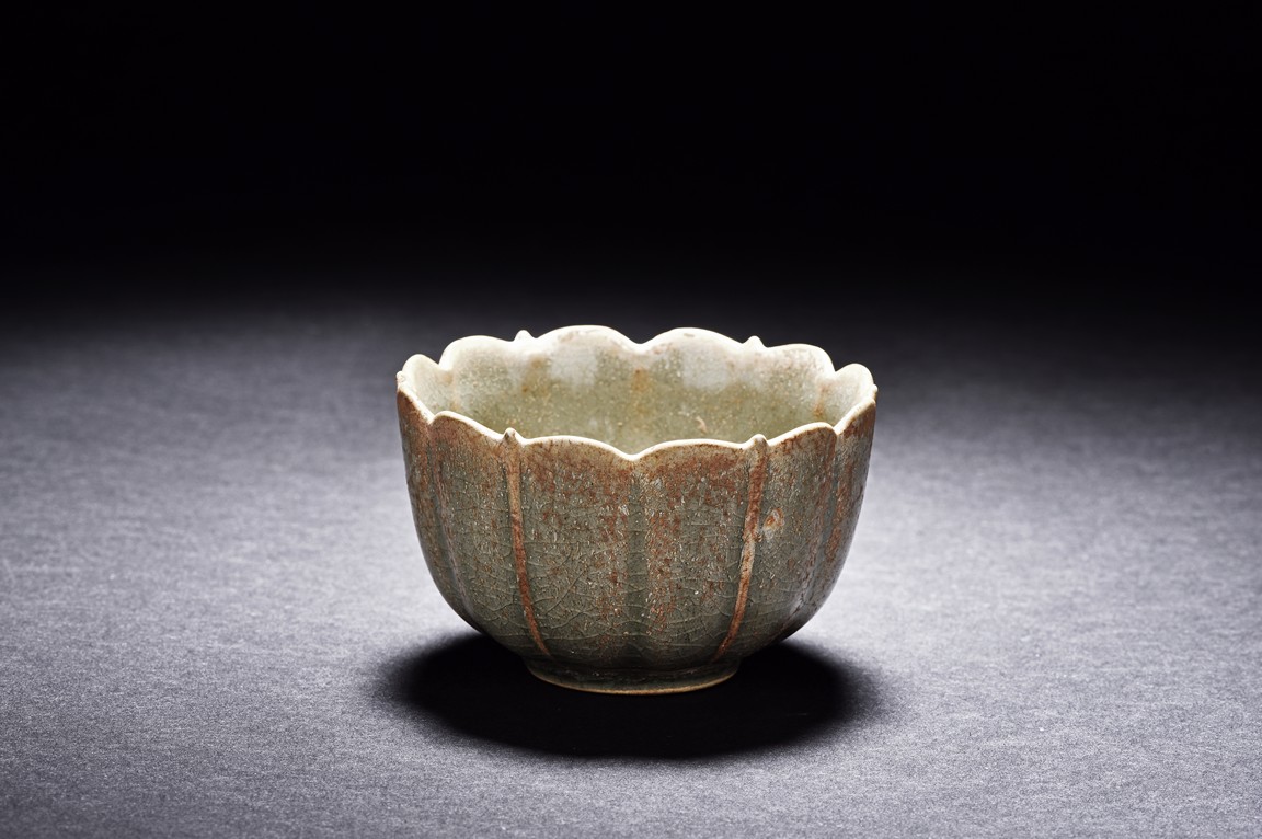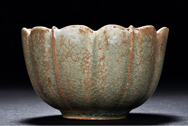 The bowl is of lotus shape of twelve lobes. The sides rise gently to the rims. It is overall covered in blue tone with fine crackling.