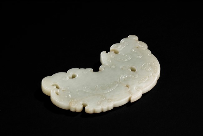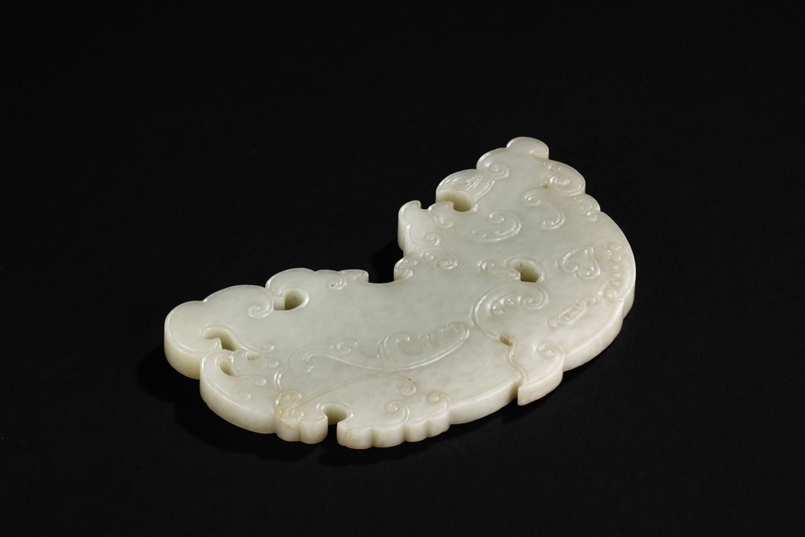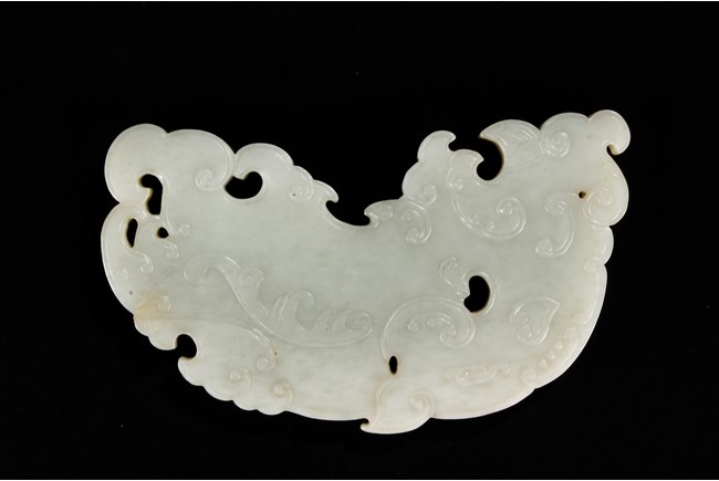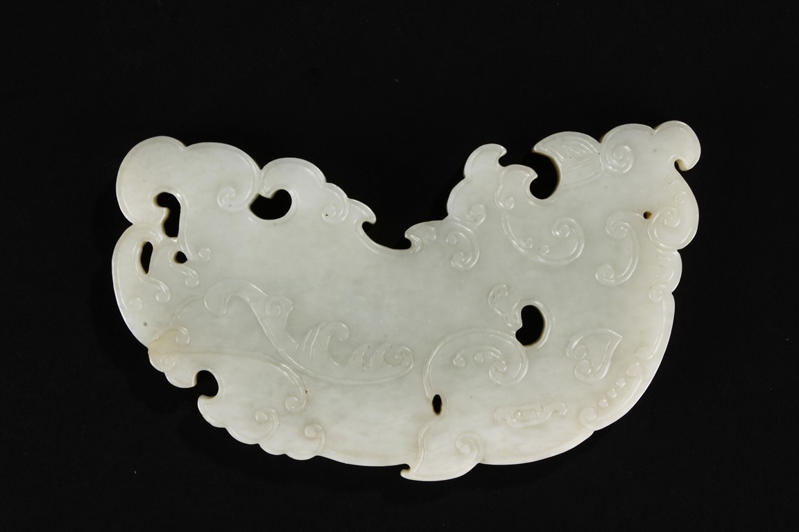 Of irregular flattened form, the pendant depicts a dragon flying amidst clouds, the stone of smooth white with translucency. Qing Dynasty period.