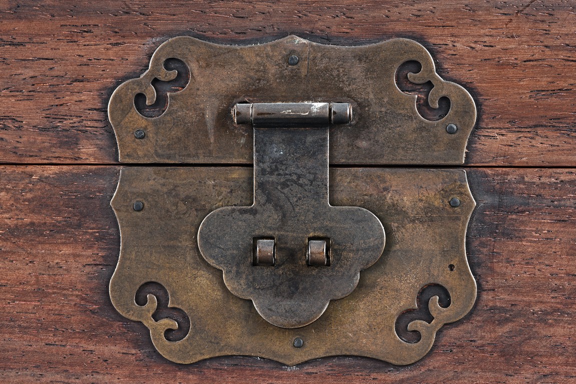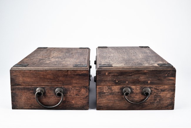 Each of rectangular shape, the top with ruyi shaped corner mounts, the side with bail handles, the front fitted with lockplate and ruyi shaped hasp. Republic period.