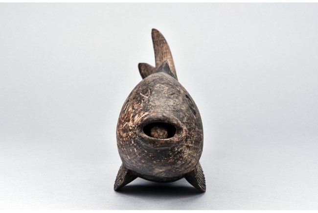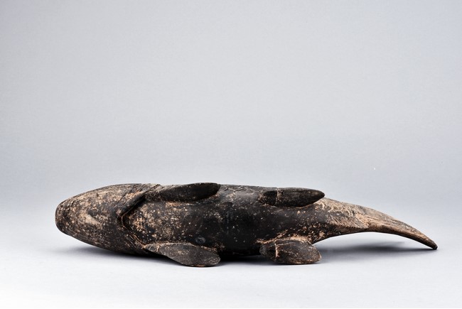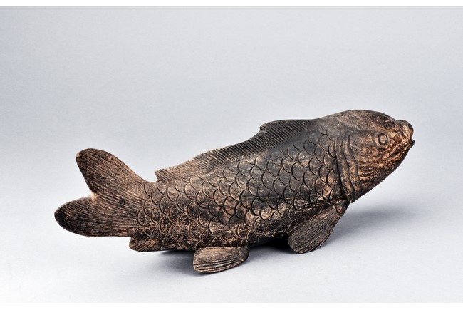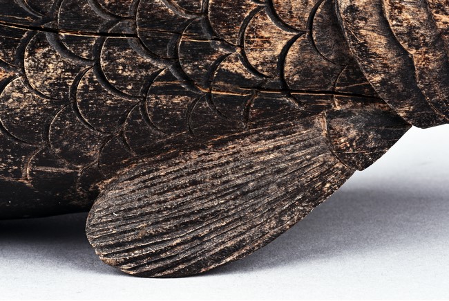 The wood carving is realistically modelled as a fish flicking its tail slightly upwards, the body finely incised to represent scales. Qing Dynasty period