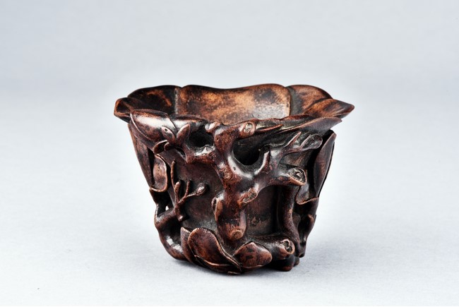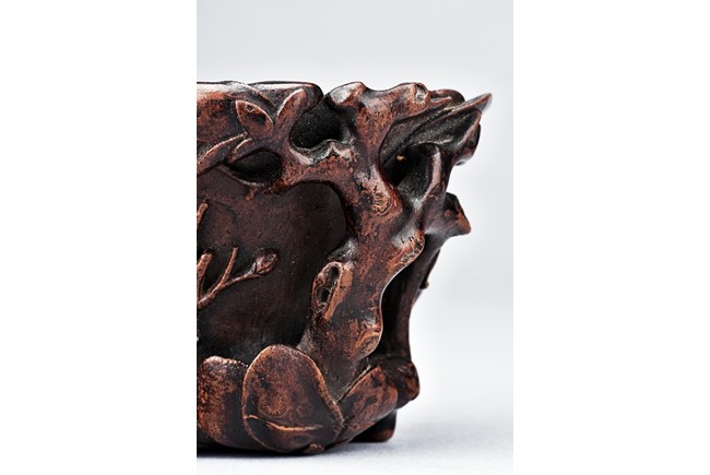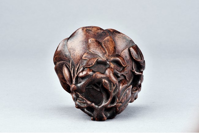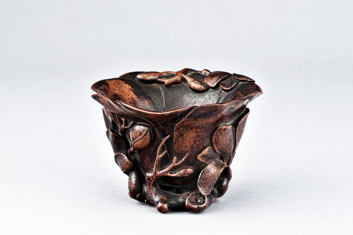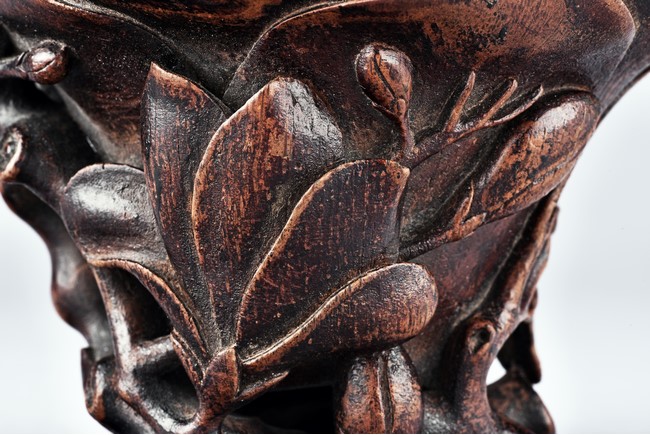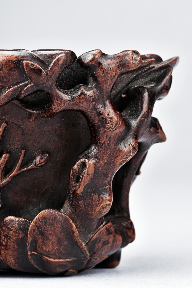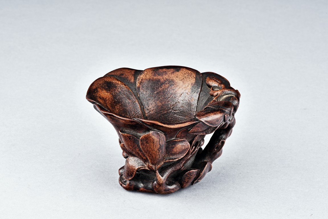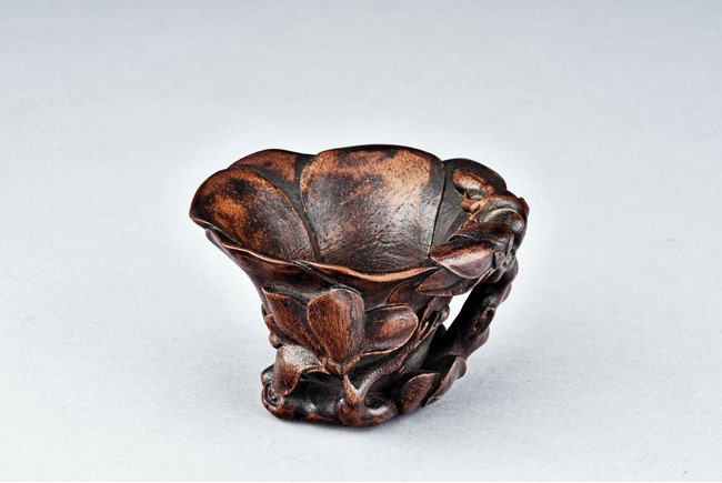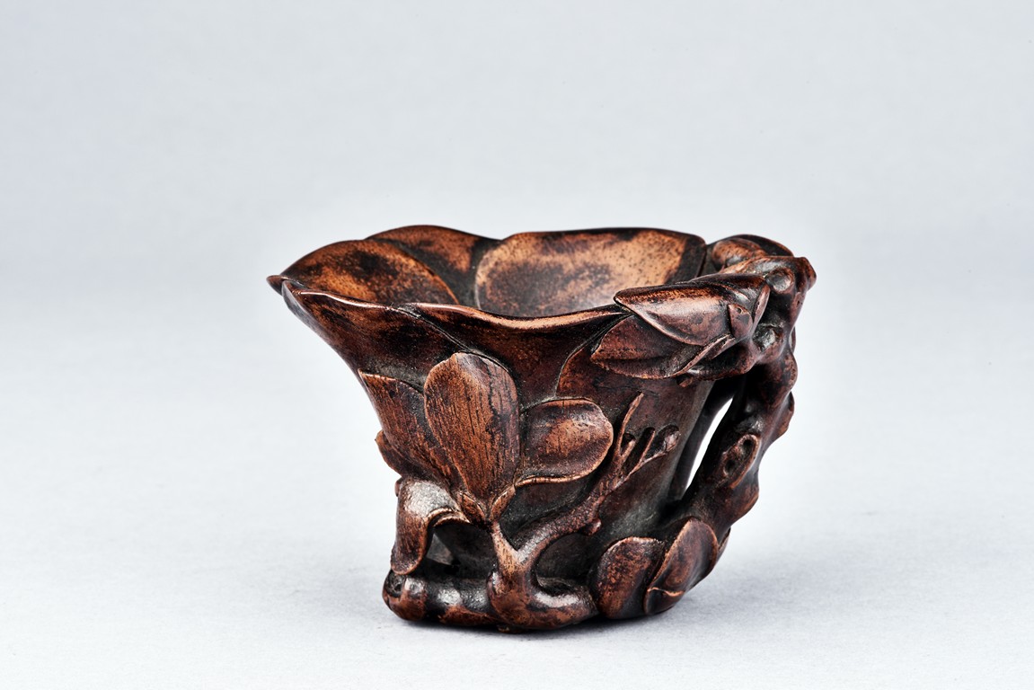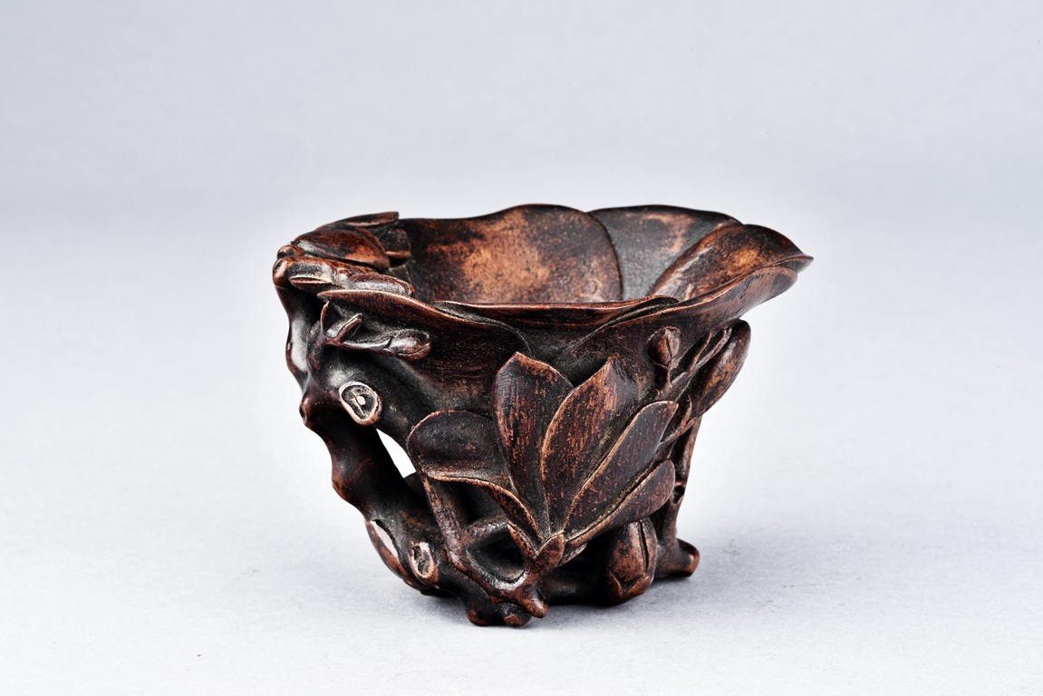 A HARDWOOD CARVED LIBATION CUP 清 硬木雕玉蘭花仿犀角杯