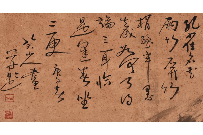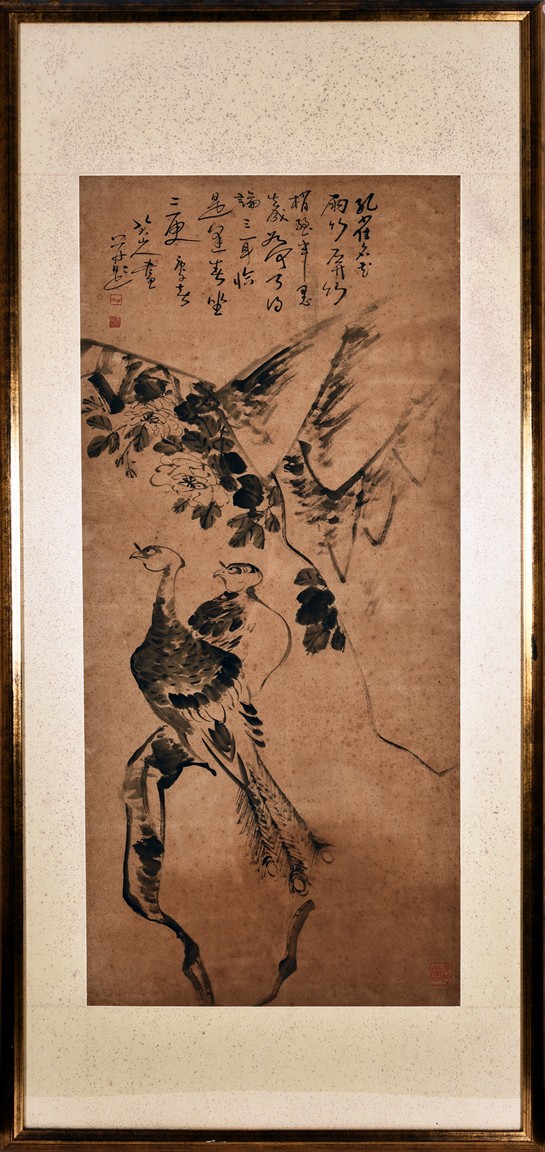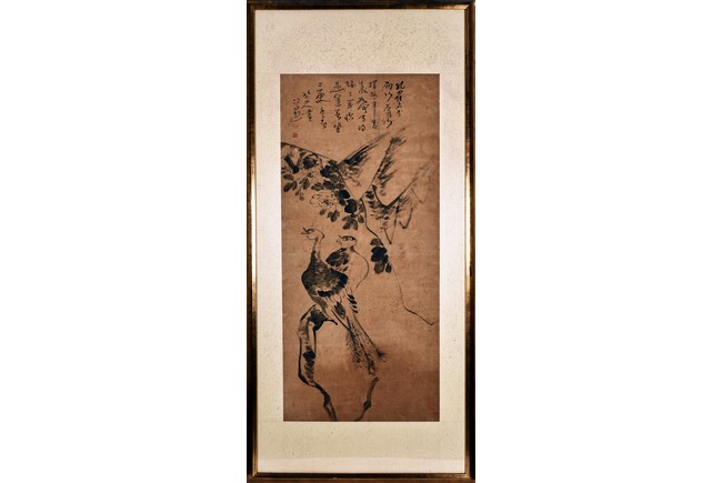 Ink on paper painting. Framed. With inscription and seals. Attributed to Zhu Da.