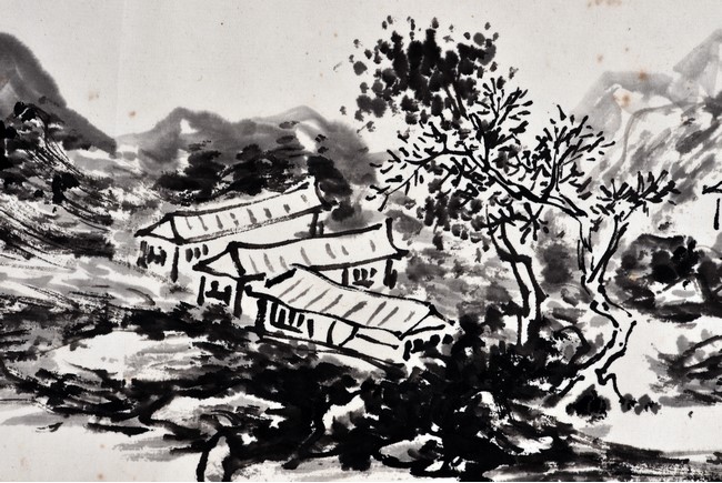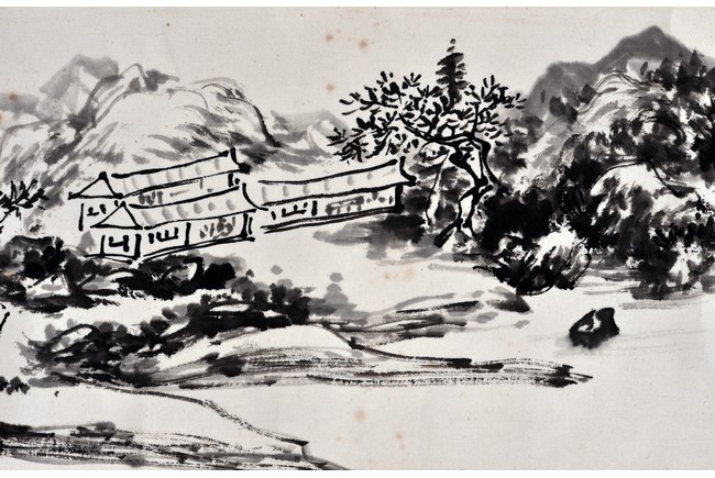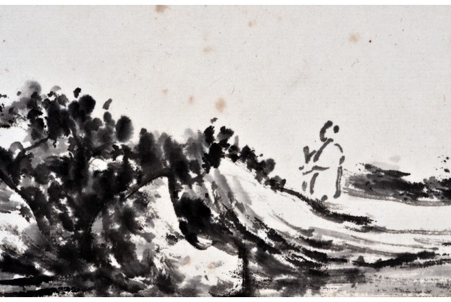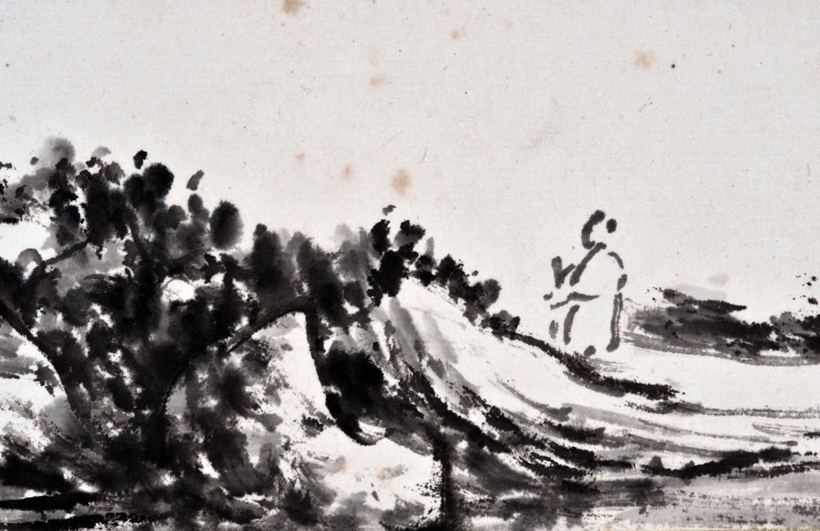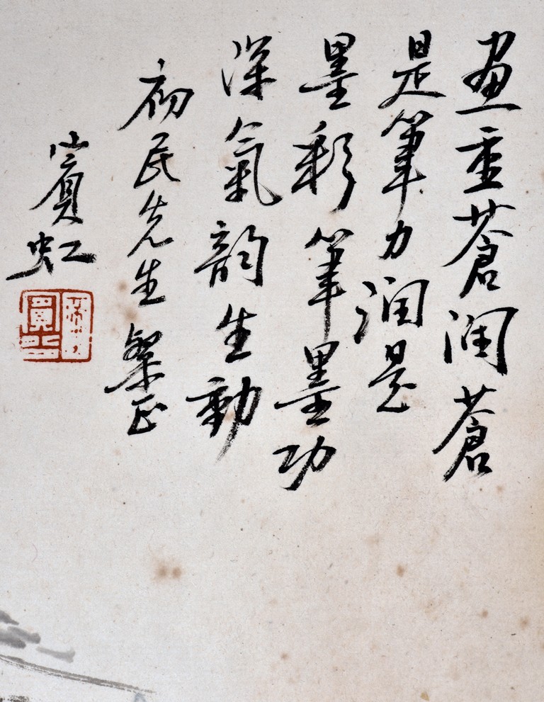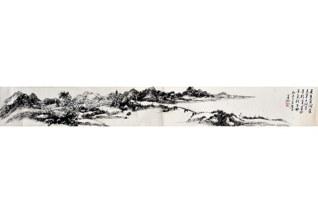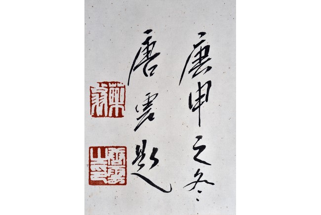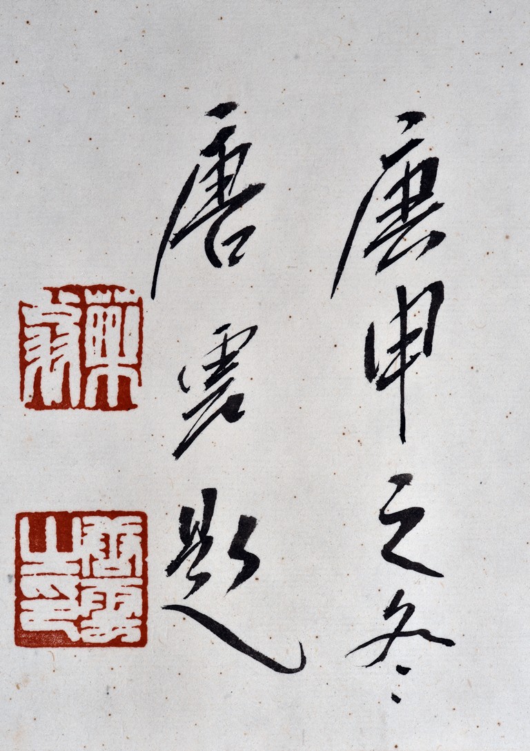 Ink on paper, scroll. Signed Binhong. One seal of the artist and two seals of collector, with a titleslip by Tang Yun (1910-1993). Attributed to Huang Binhong.
