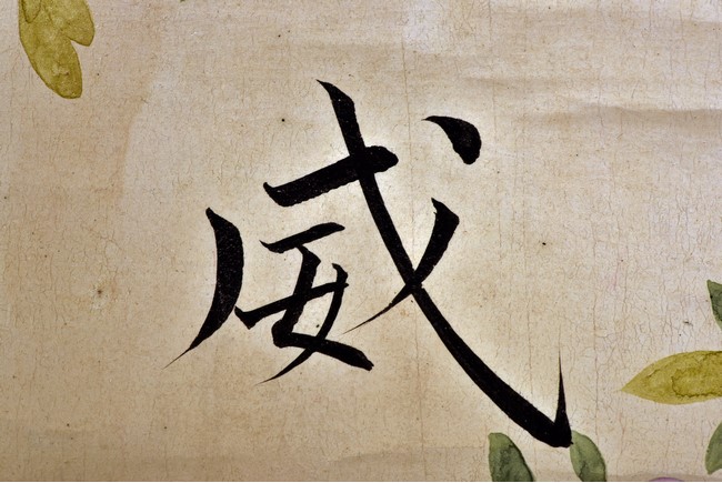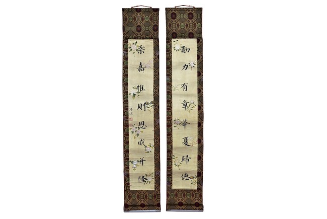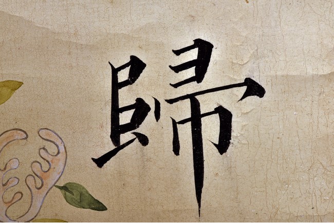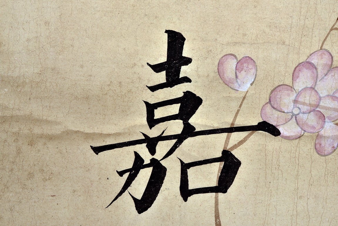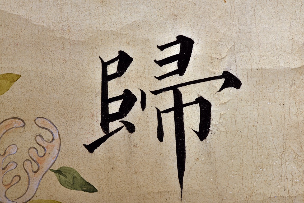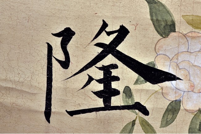 Color and ink on paper. Inscribed and signed, the background painted with colored flowers. with two seals of the artist. Attributed to Pu Ru.