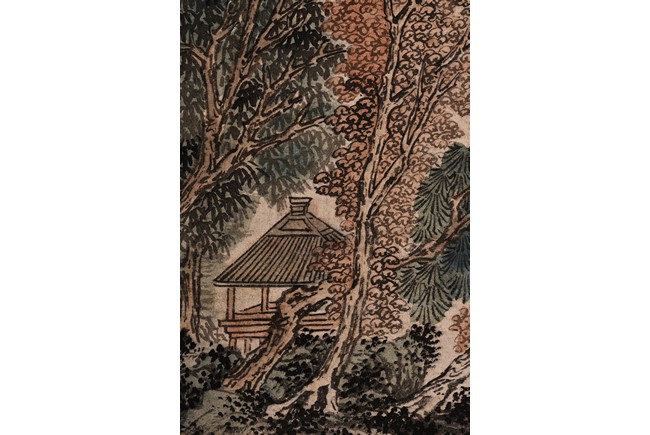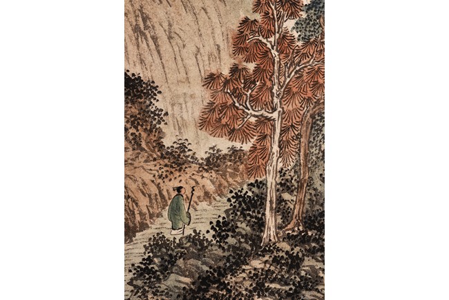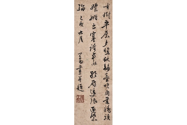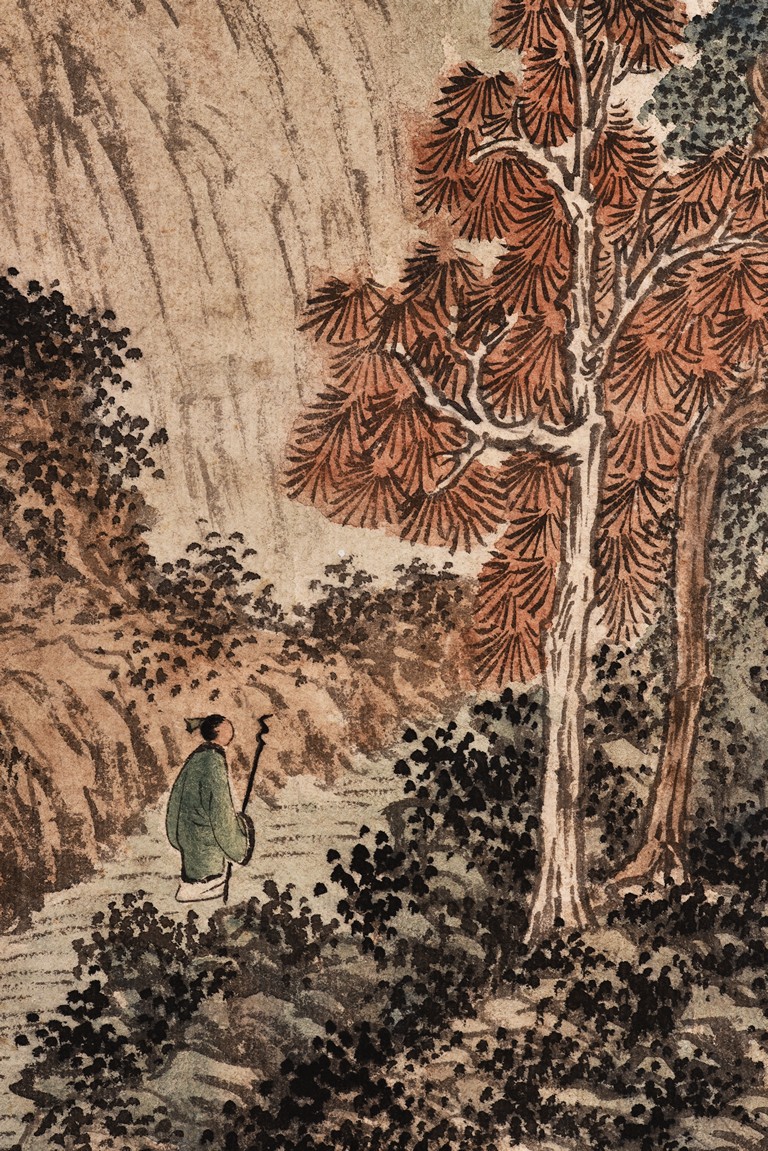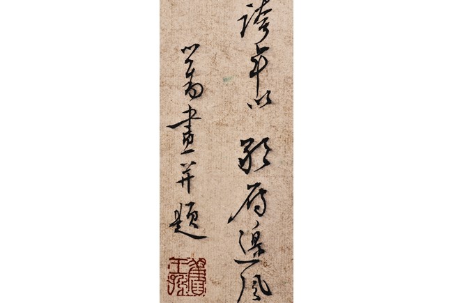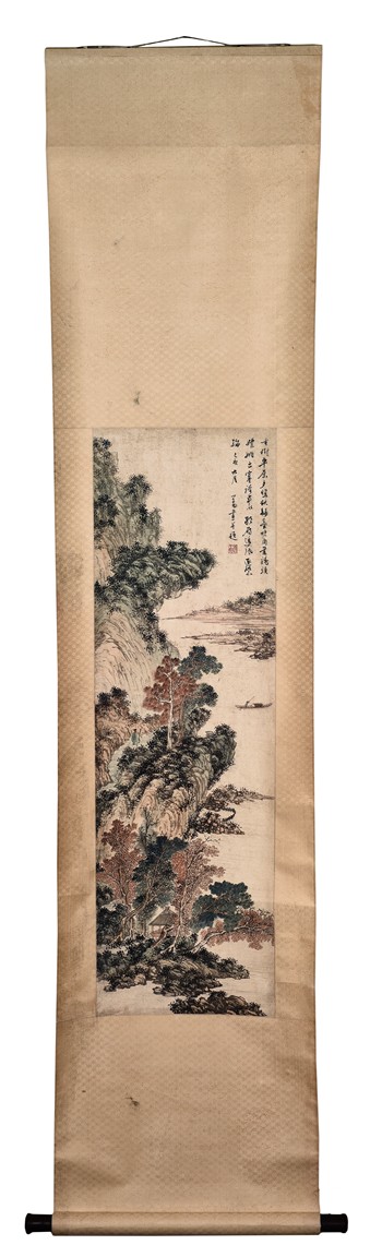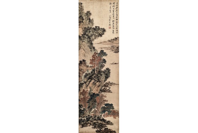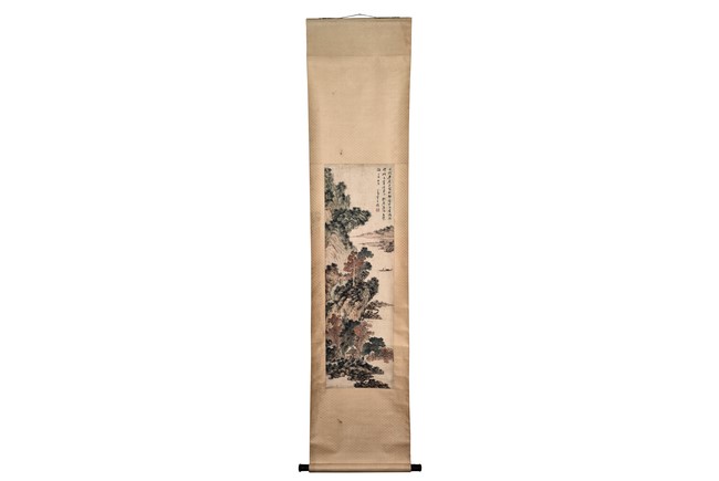 Ink and color on paper painting. Hanging scroll. Inscribed and signed. With one seal of the artist. Attributed to Pu Xinyu.