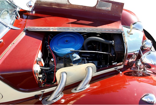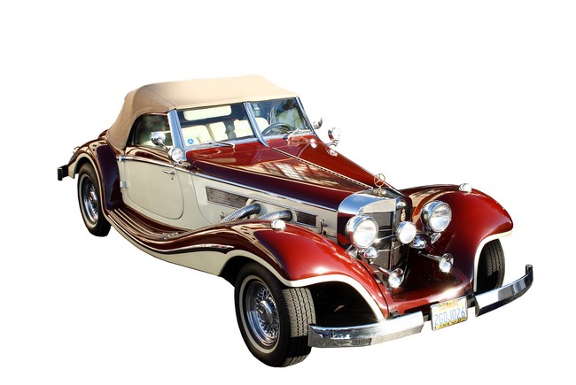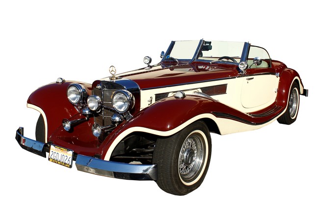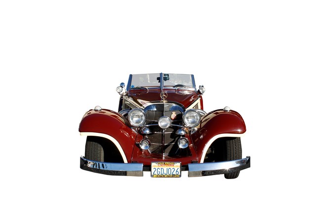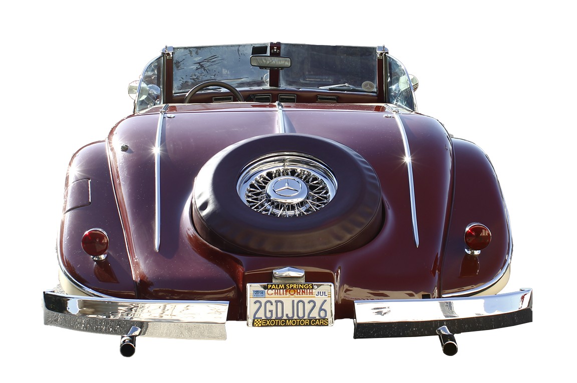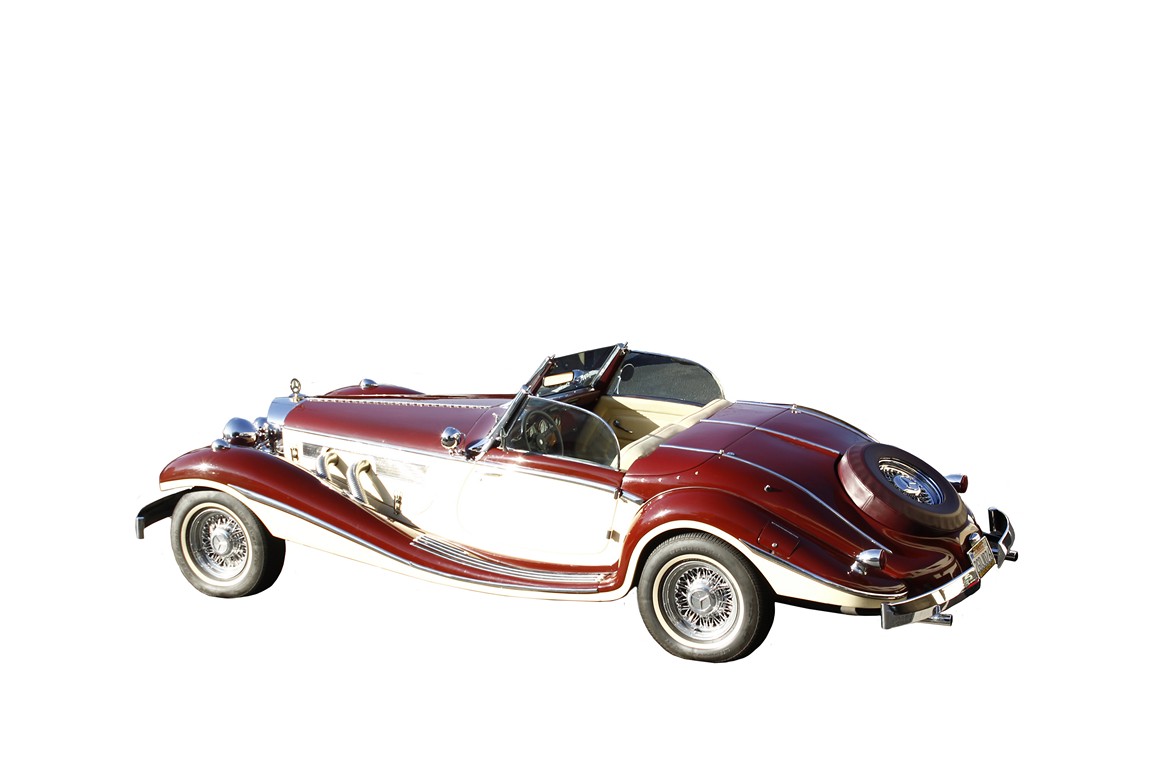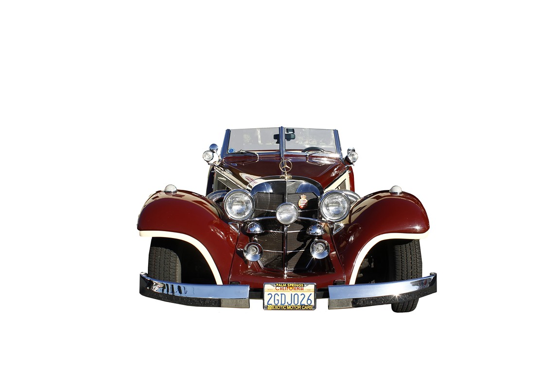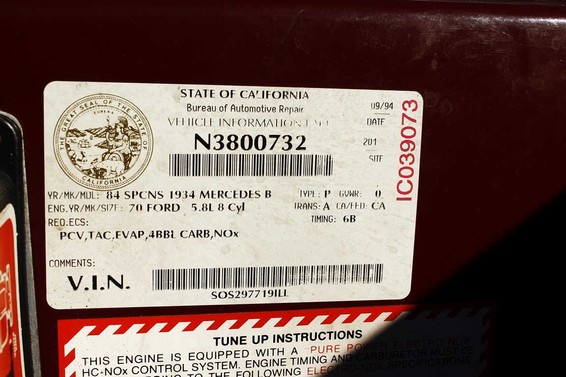 The vehicle is a 1934 Mercedes-Benz 500k replica, made in 1984, with a 1970 Ford 5.8L V8 engine. The exterior is of burgundy and white color, tan leather interior and tan convertible top, automatic transmission, windows, AC, radio, cassette player, classic vintage gauges, and vintage horn. Mileage on odometer reads 14184 miles. Car in excellent condition and was maintained rigoriously, with current title and registration. BUYER IS RESPONSIBLE FOR ALL TRANSACTION FEE INCLUDING BUT NOT LIMITED TO: TITLE TRANSFER, SHIPPING, TAX, AND OTHER APPLICABLE FEE.