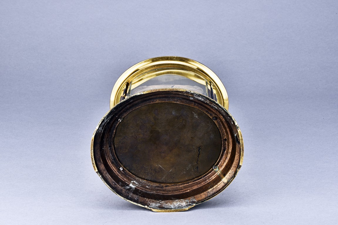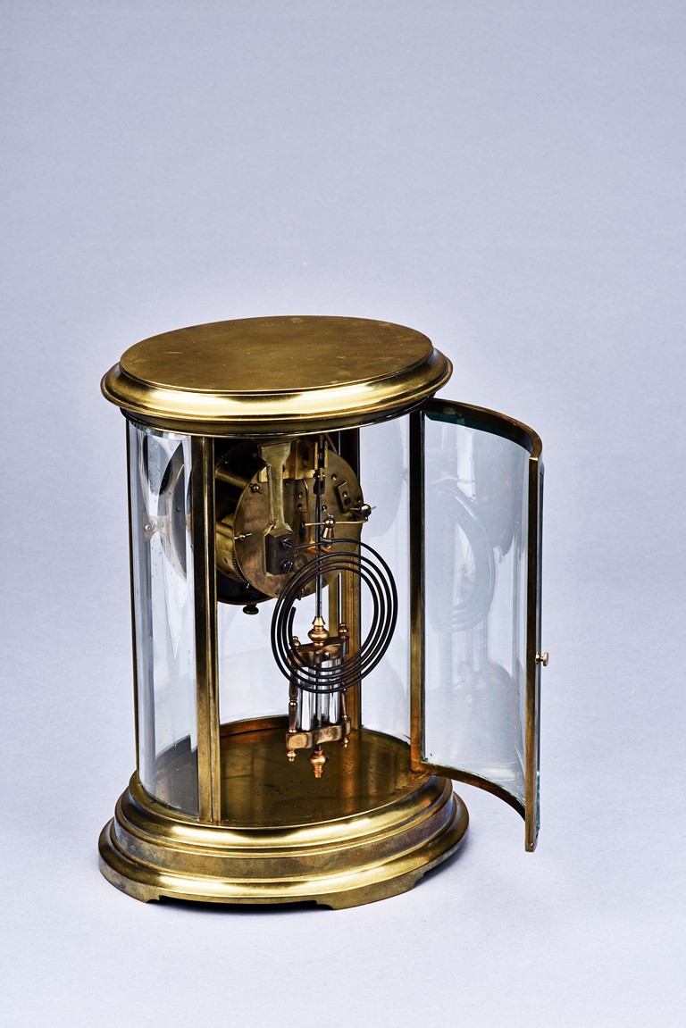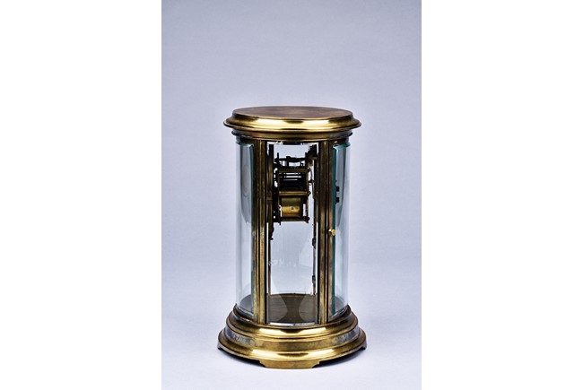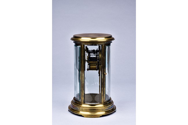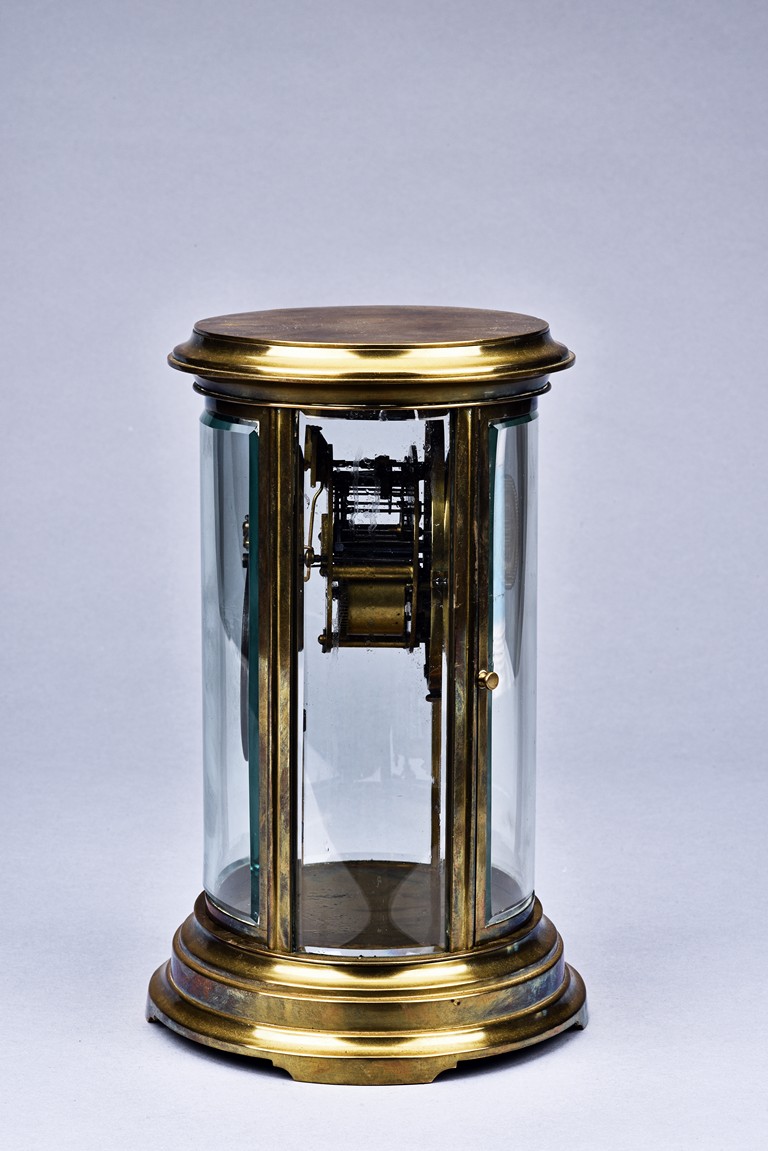Of cylinder form, set in brass gilt case with beveled glass, stamped with Medaille d'argent made in France.