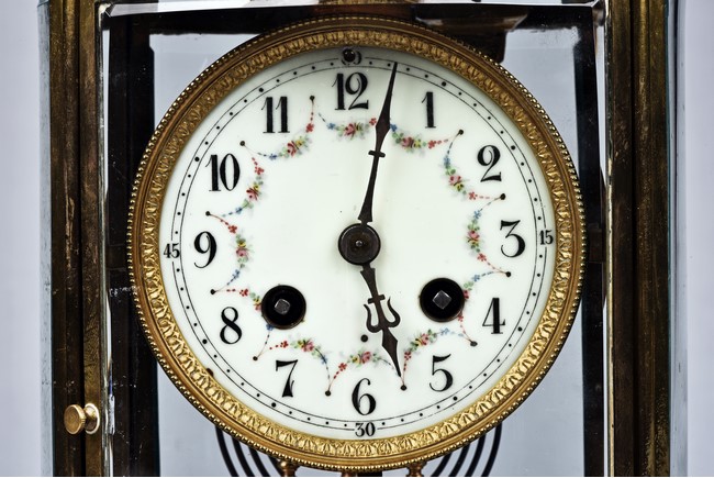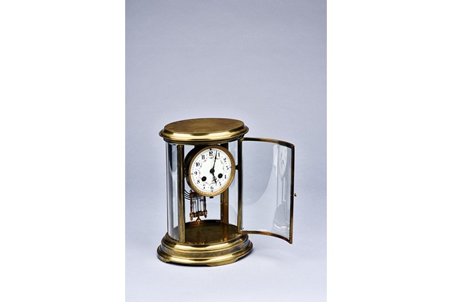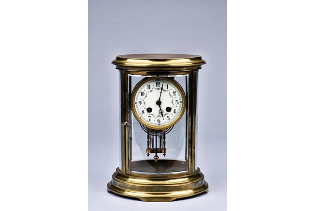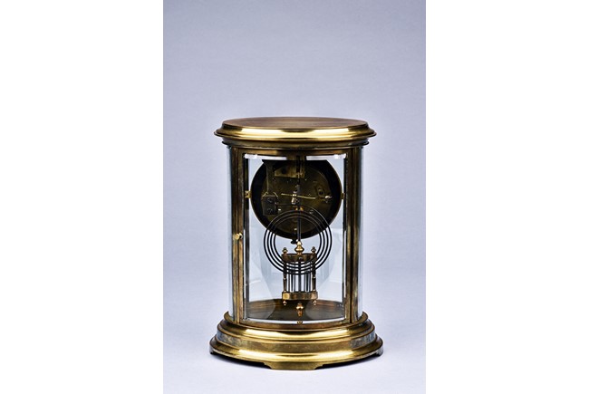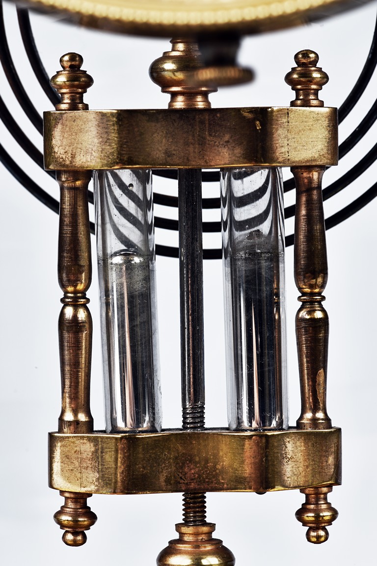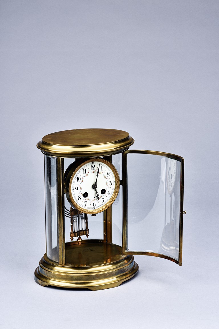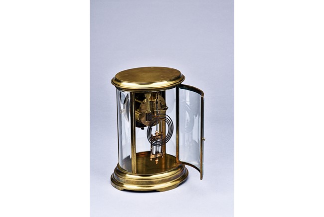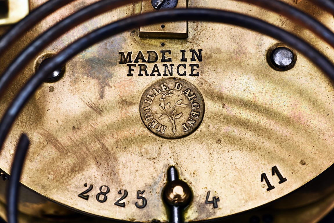 Of cylinder form, set in brass gilt case with beveled glass, stamped with Medaille d'argent made in France.