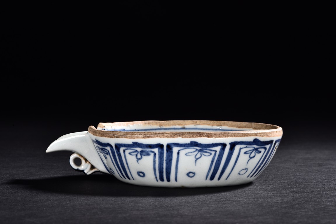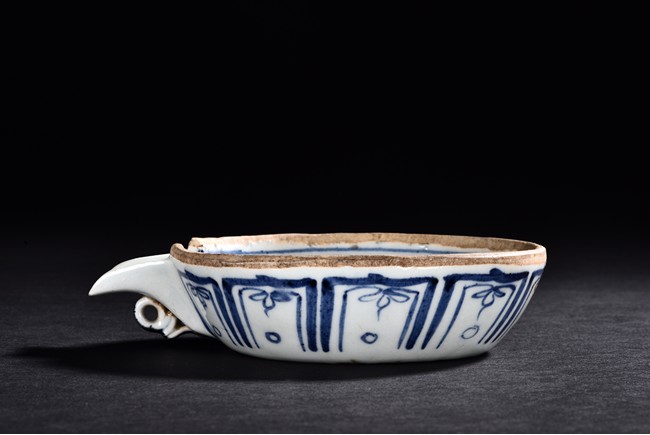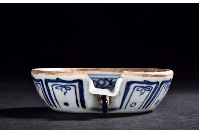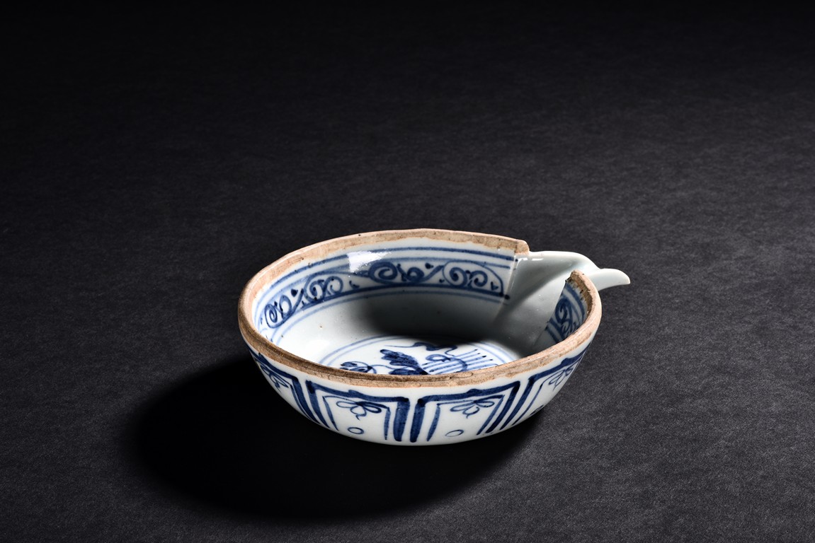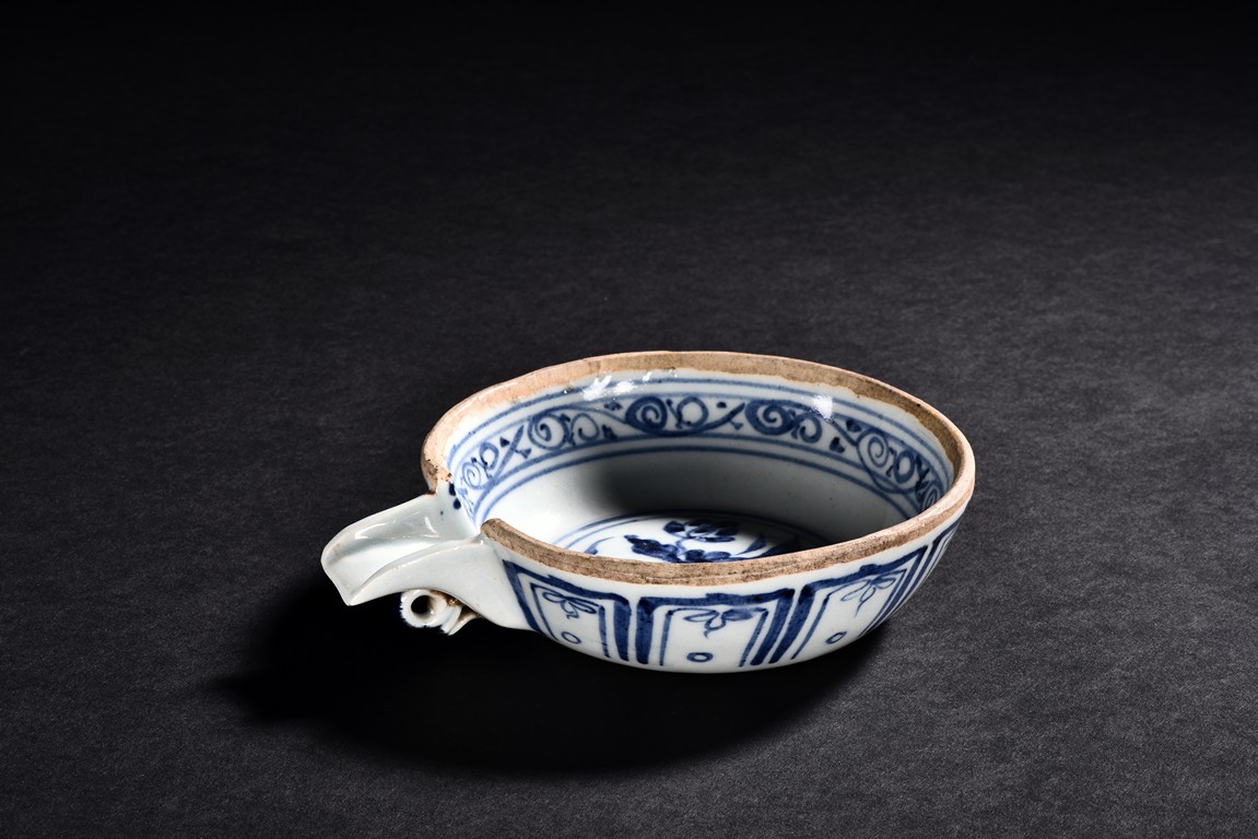 Decorated with scrolling pattern in both interior and exterior.