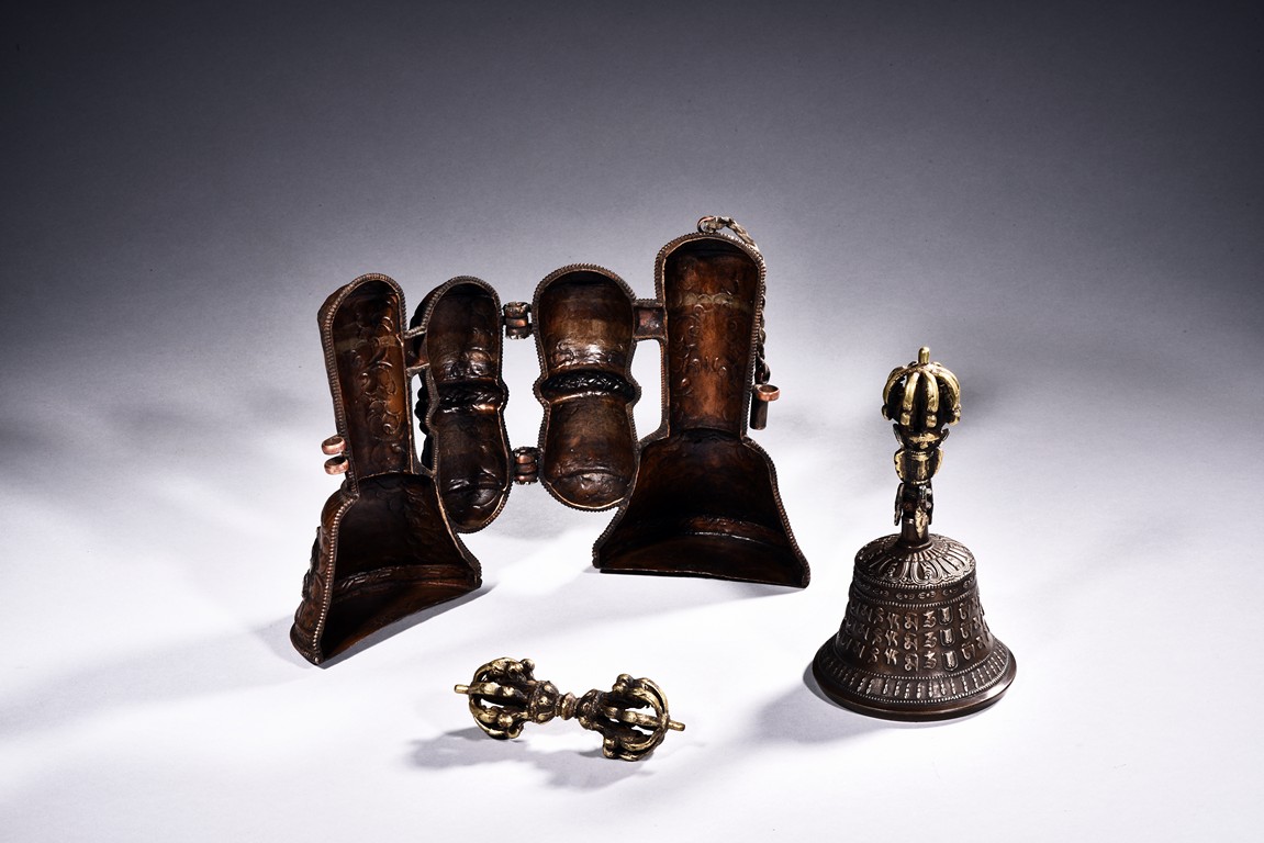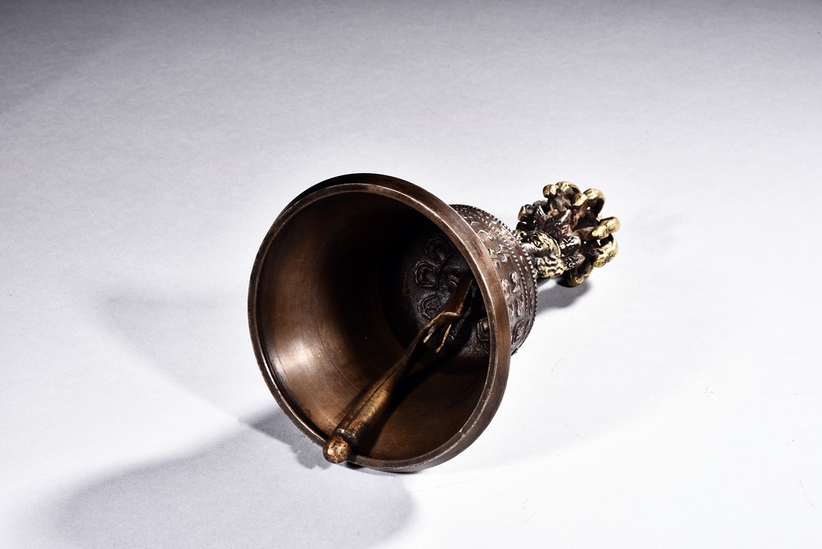 A BRONZE SILVER VAJRA, VAJRA BELL, AND CASE 銅法器 鈴鐺形