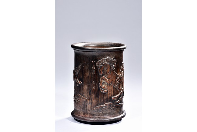 A BAMBOO #EIGHT HORSES# BRUSHPOT 八駿圖竹筆筒