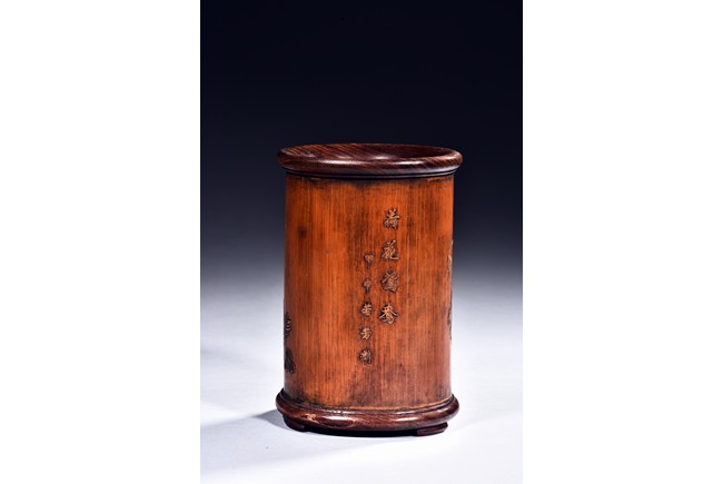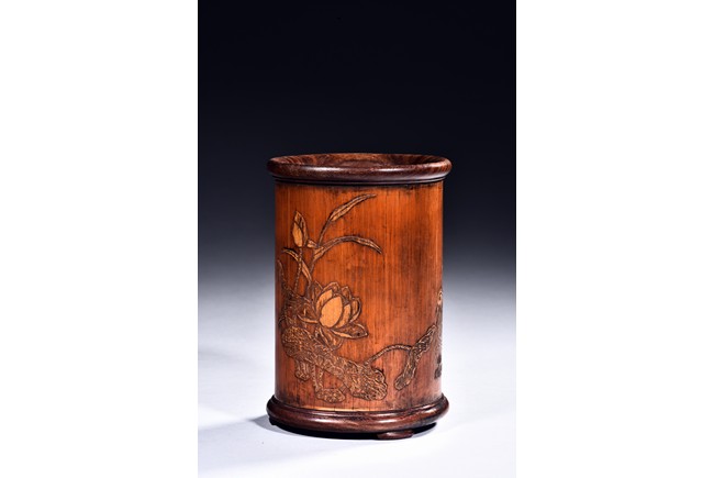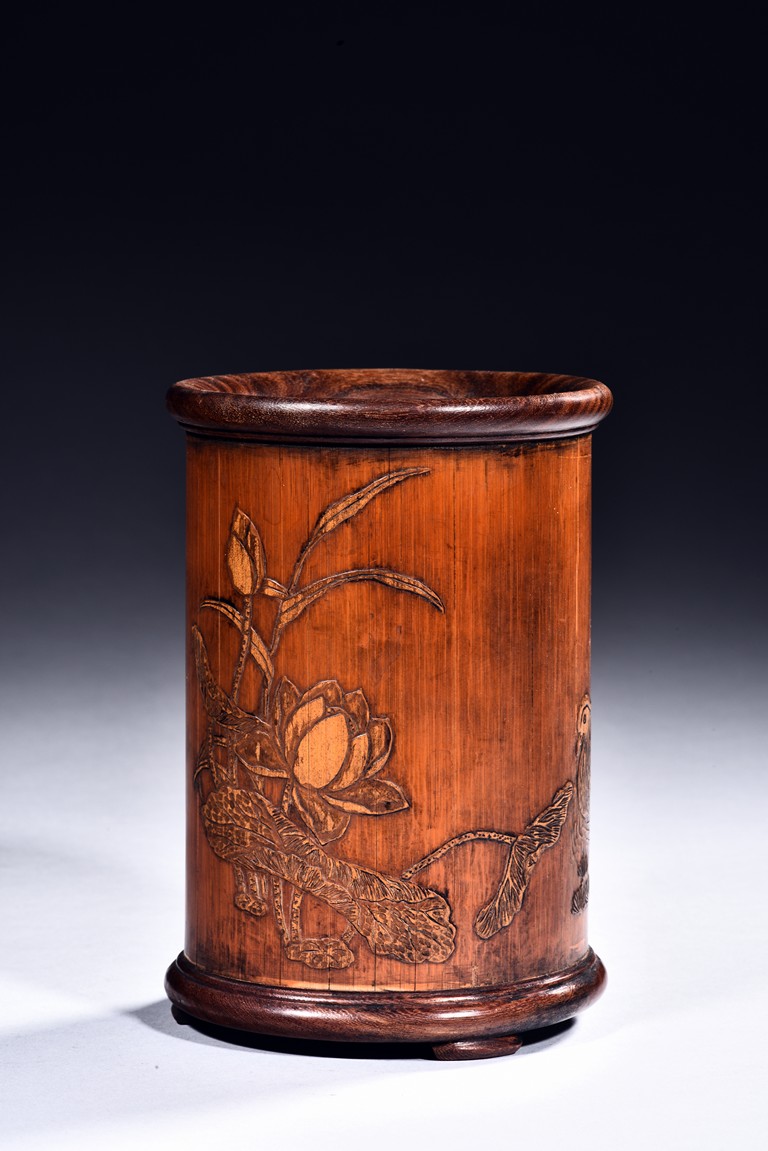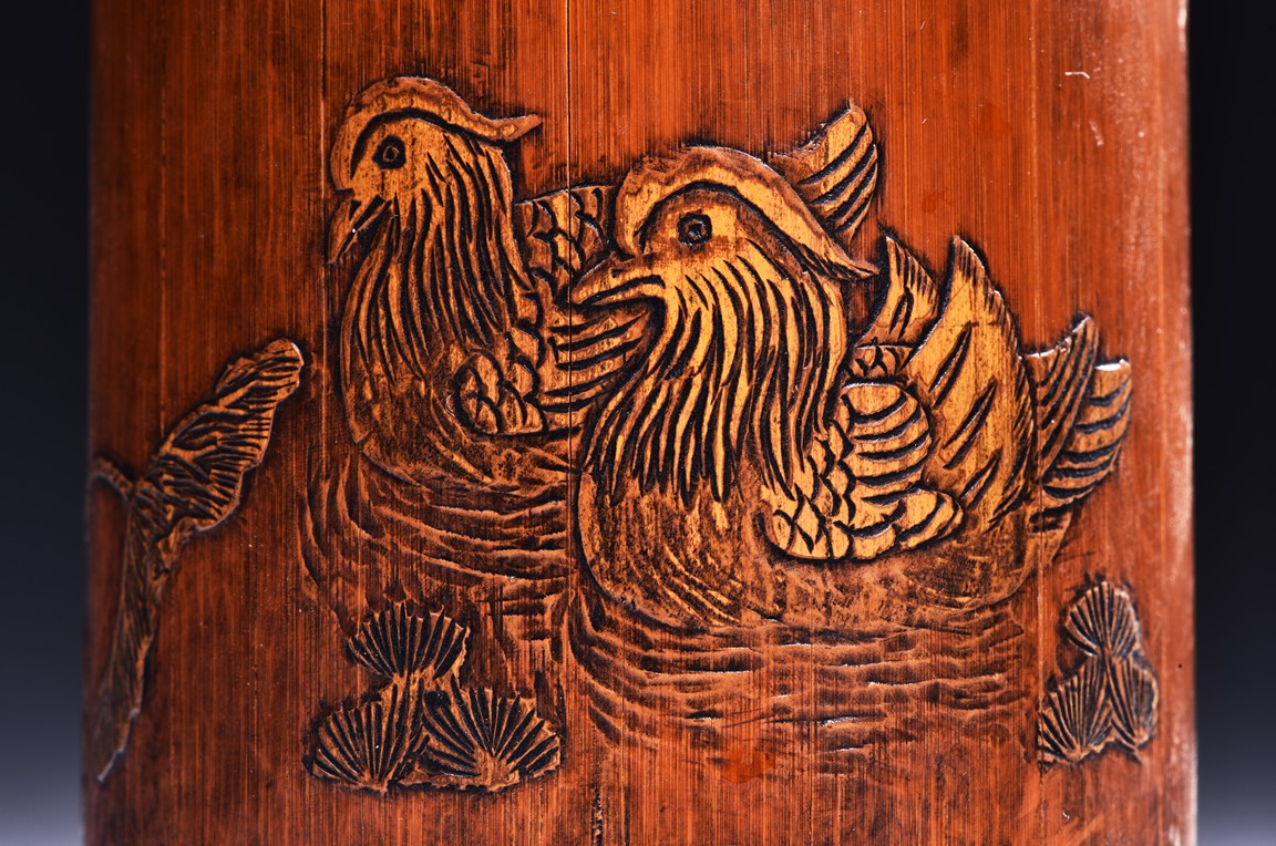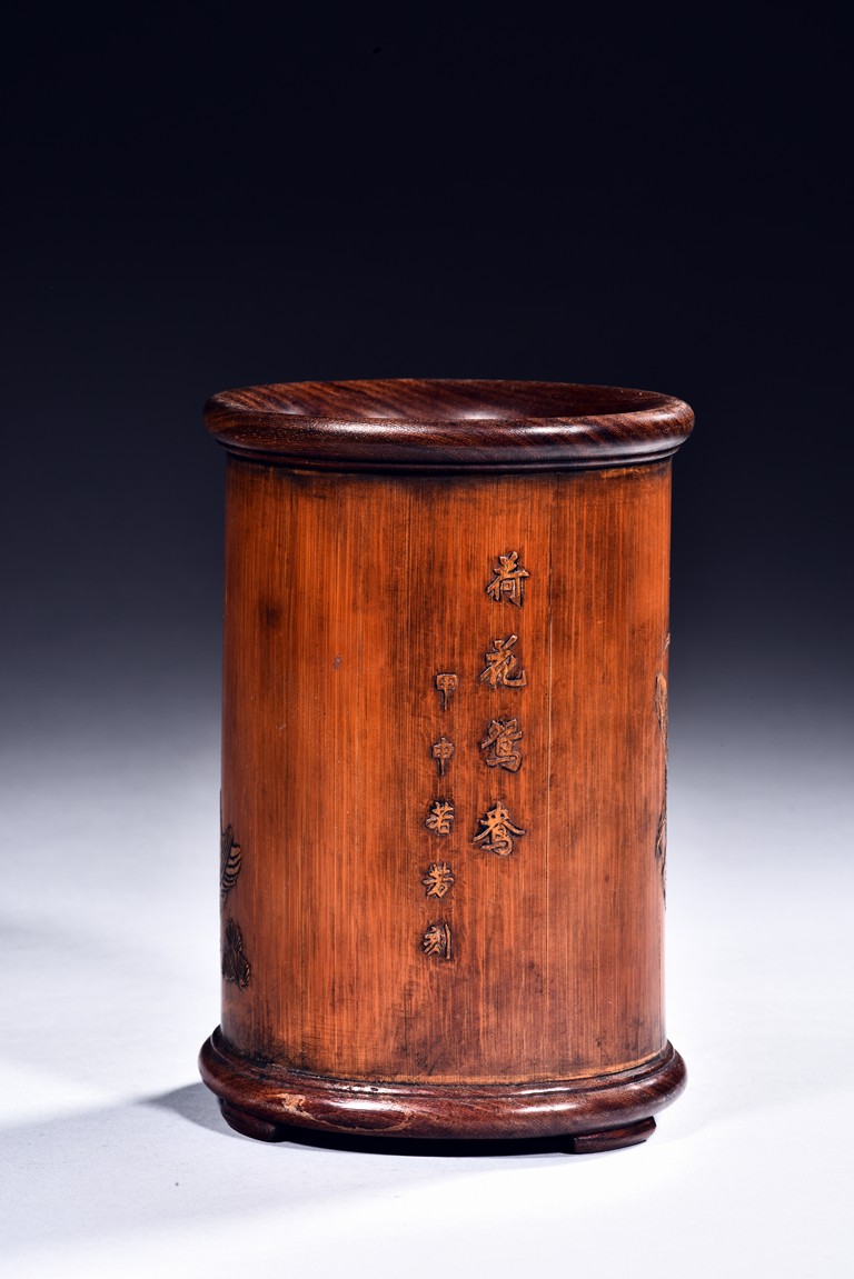 A BAMBOO #LOTUS# BRUSHPOT 荷花鴛鴦竹筆筒