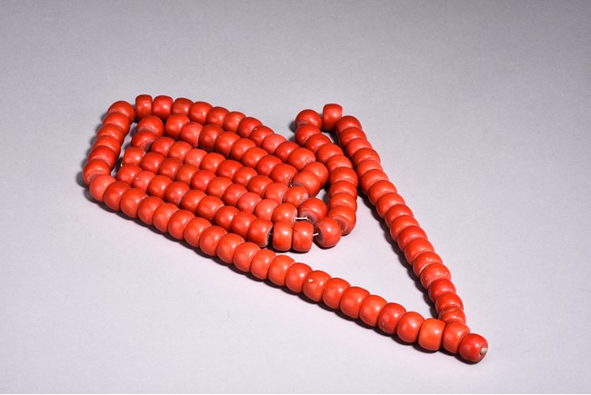 A CORAL-LIKE BEADED NECKLACE 紅珠串 110顆