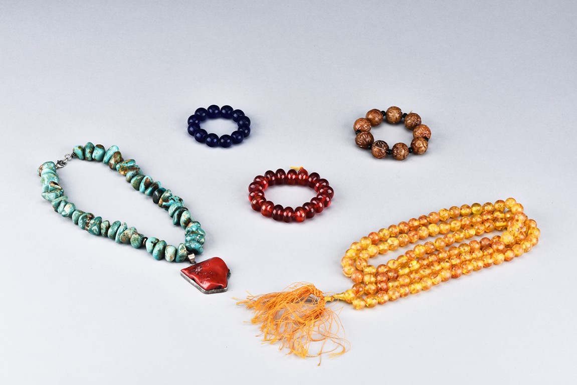 A SET OF FIVE BEADED BRACELETS AND NECKLACES 珠串五串