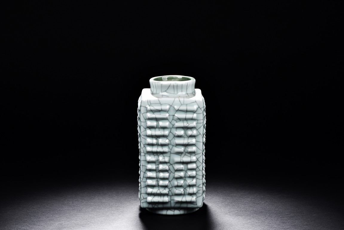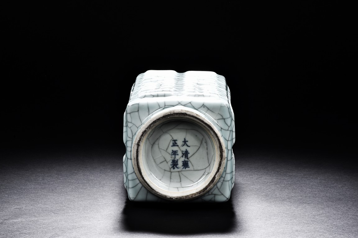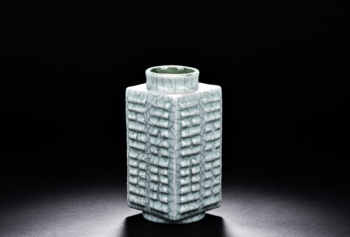 A GE-TYPE VASE 仿哥窯碎瓷方瓶