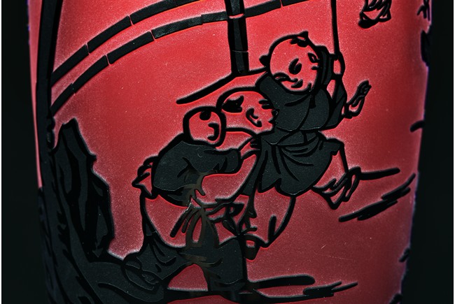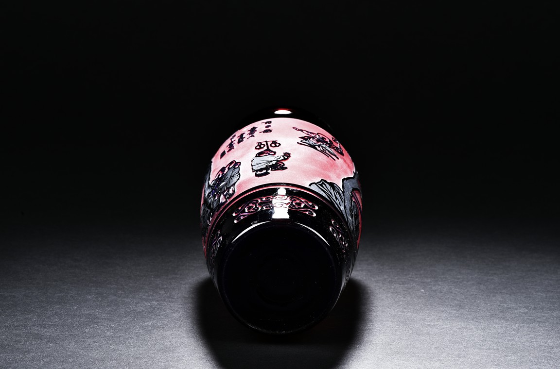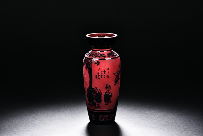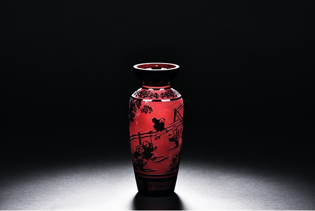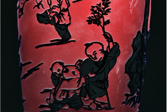 A GLASS 'CHILDREN' VASE 玻璃 童子嬉戲圖瓶