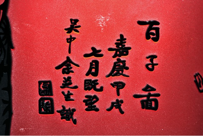 Decorated with children playing and inscription.