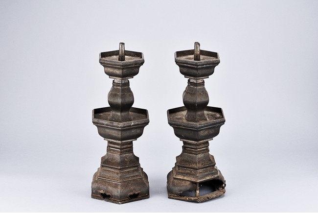 A PAIR OF BRONZE CANDLESTICKS 燭臺一對