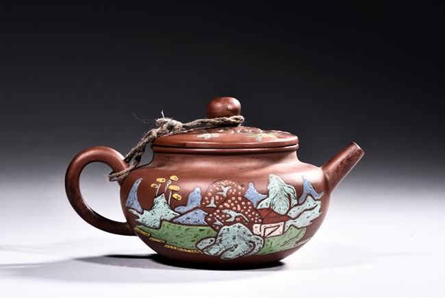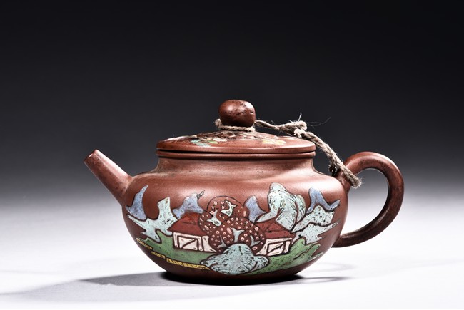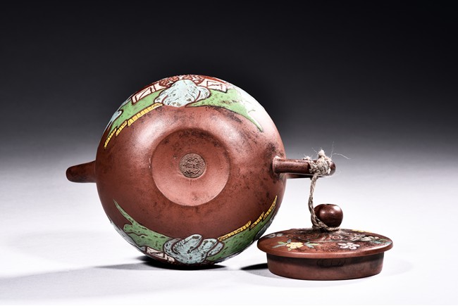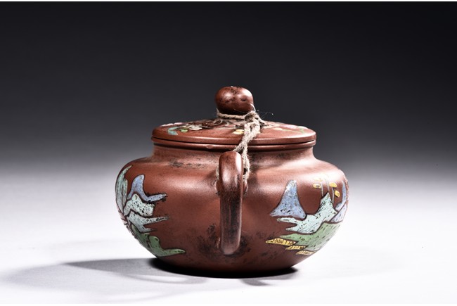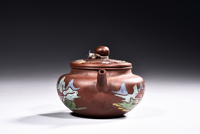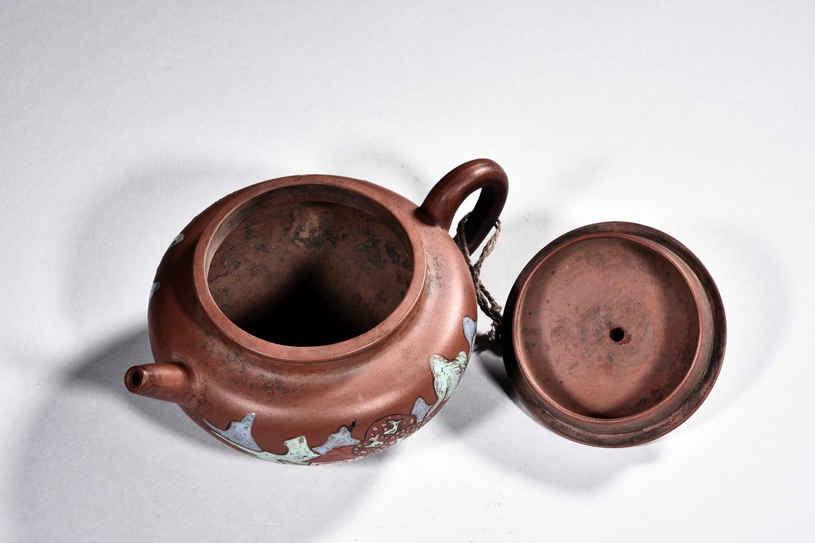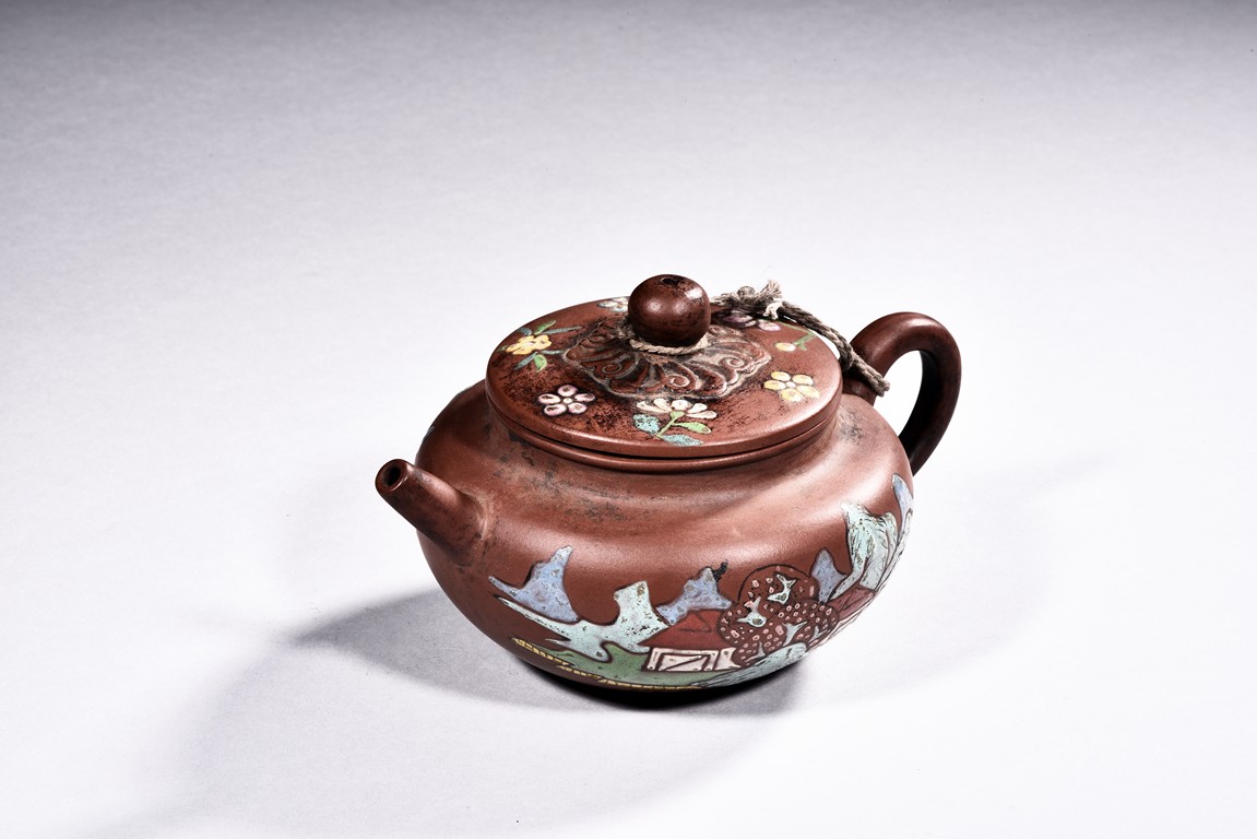 A YIXING ZISHA PAINTED TEAPOT 貢局款描彩紫砂壺