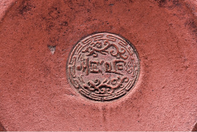 The body painted with landscape and cover with flower motif. The bottom with a circular mark.