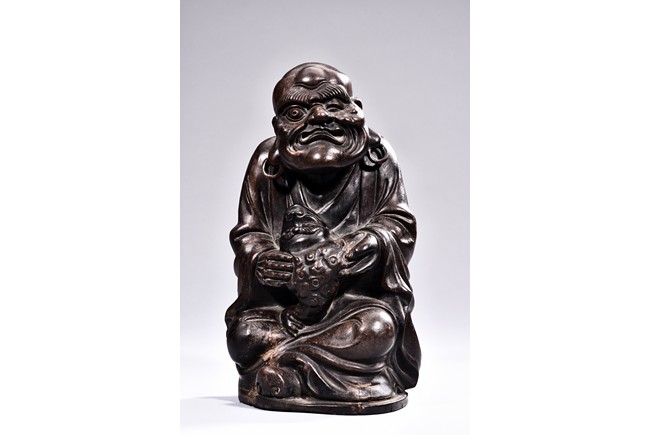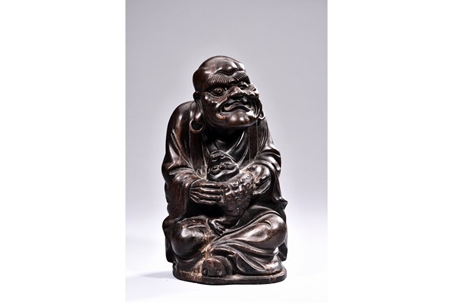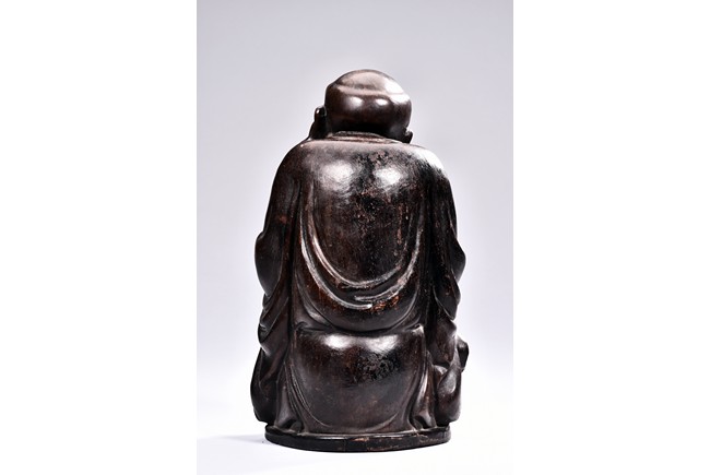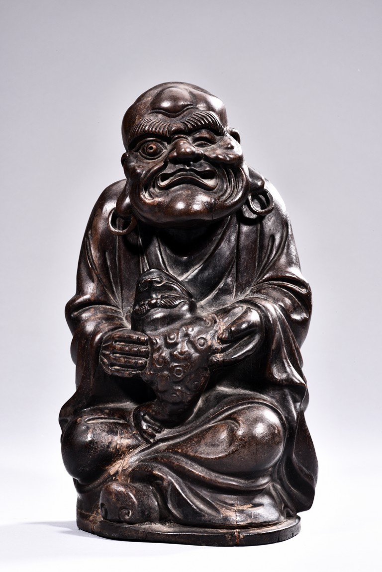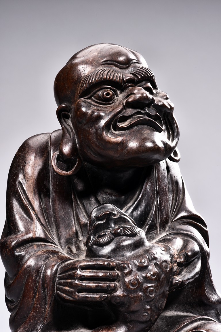 A HARDWOOD FIGURE OF LIUHAI AND TOAD 硬木雕劉海戲金蟾