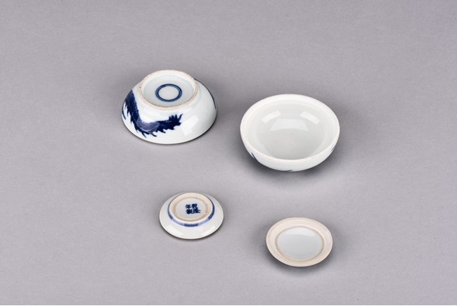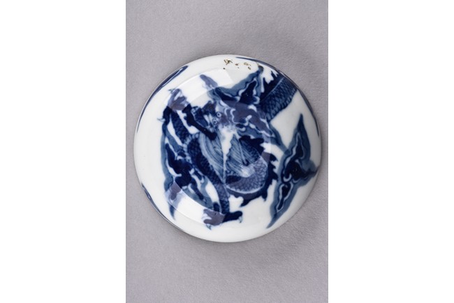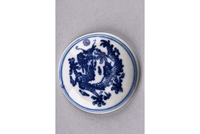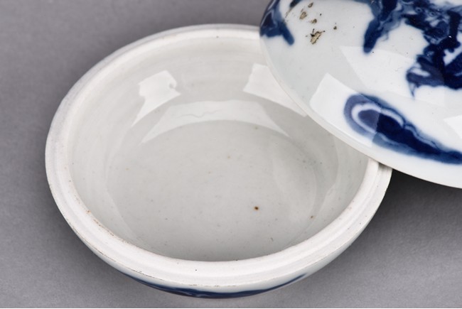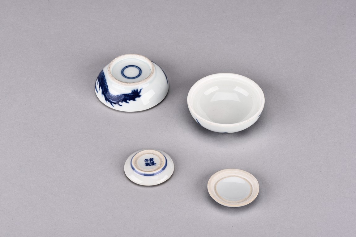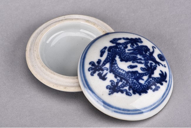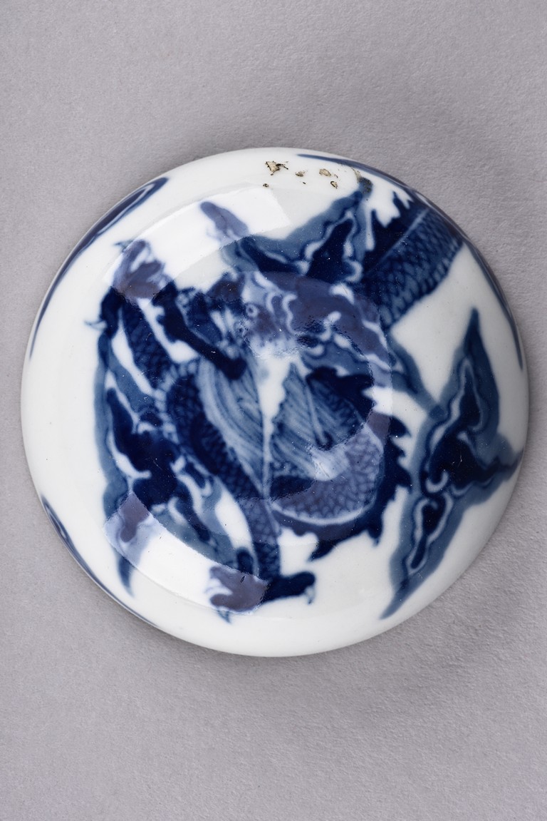 A SET OF TWO BLUE AND WHITE SEAL PASTE BOXES 青花龍紋印泥盒兩個