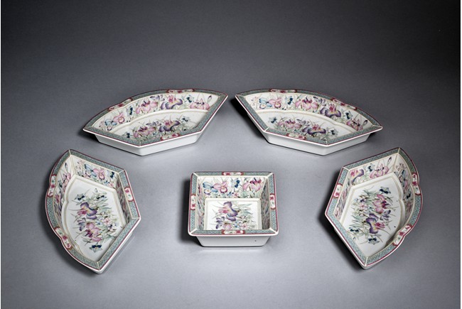 A SET OF FIVE FAMILLE ROSE JARDINIERES 瓷彩釉小水仙盆五個