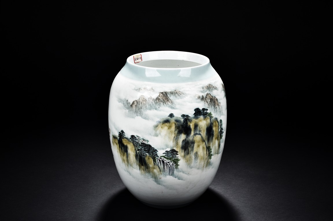 A FAMILLE ROSE LANDSCAPE JAR 現代 山水圖瓶