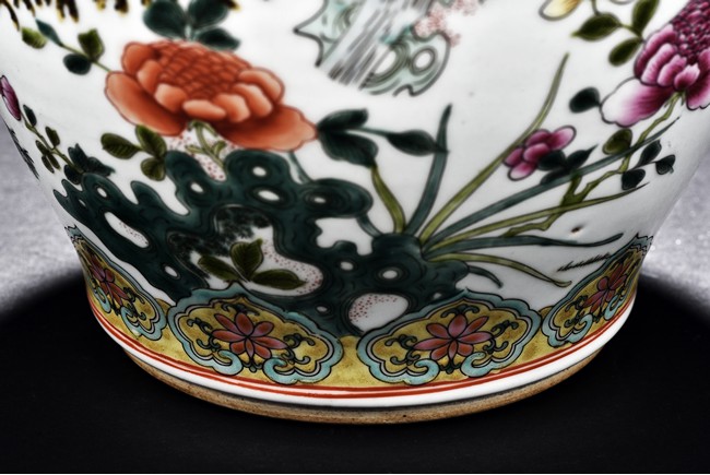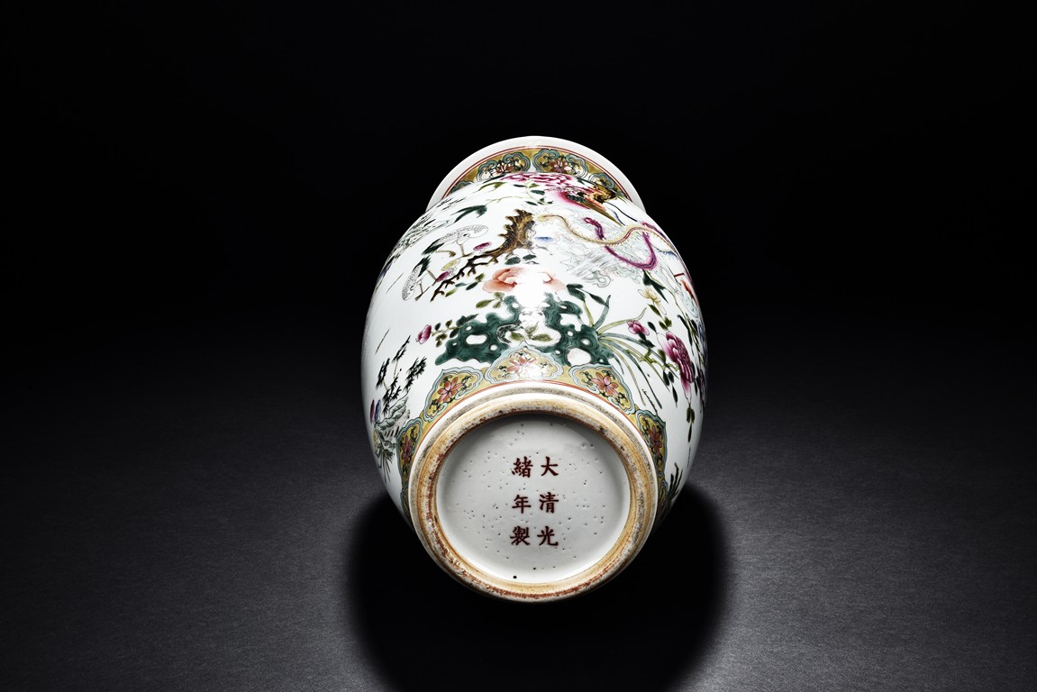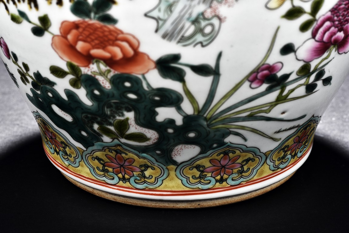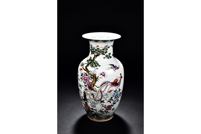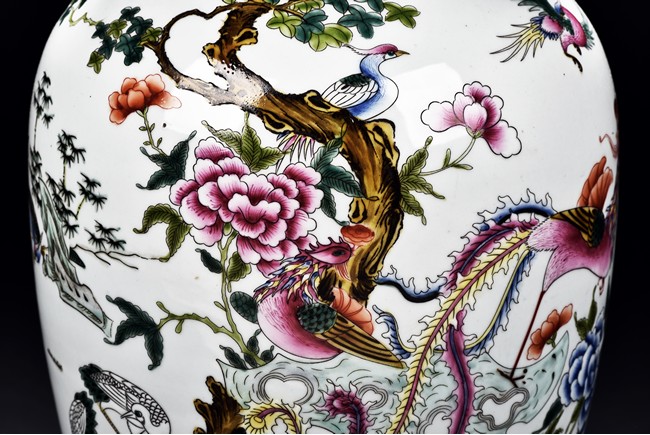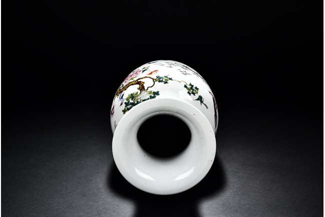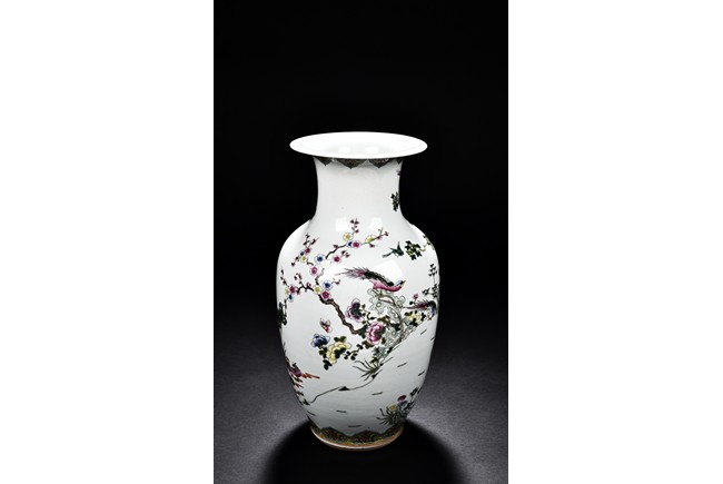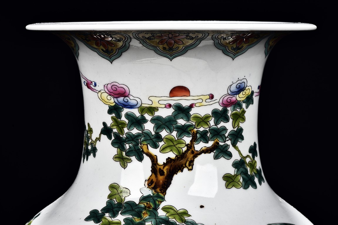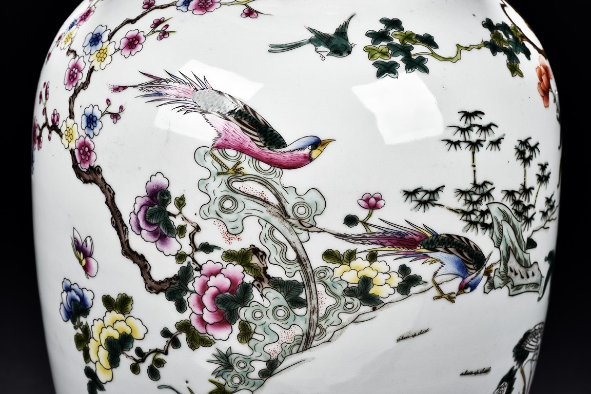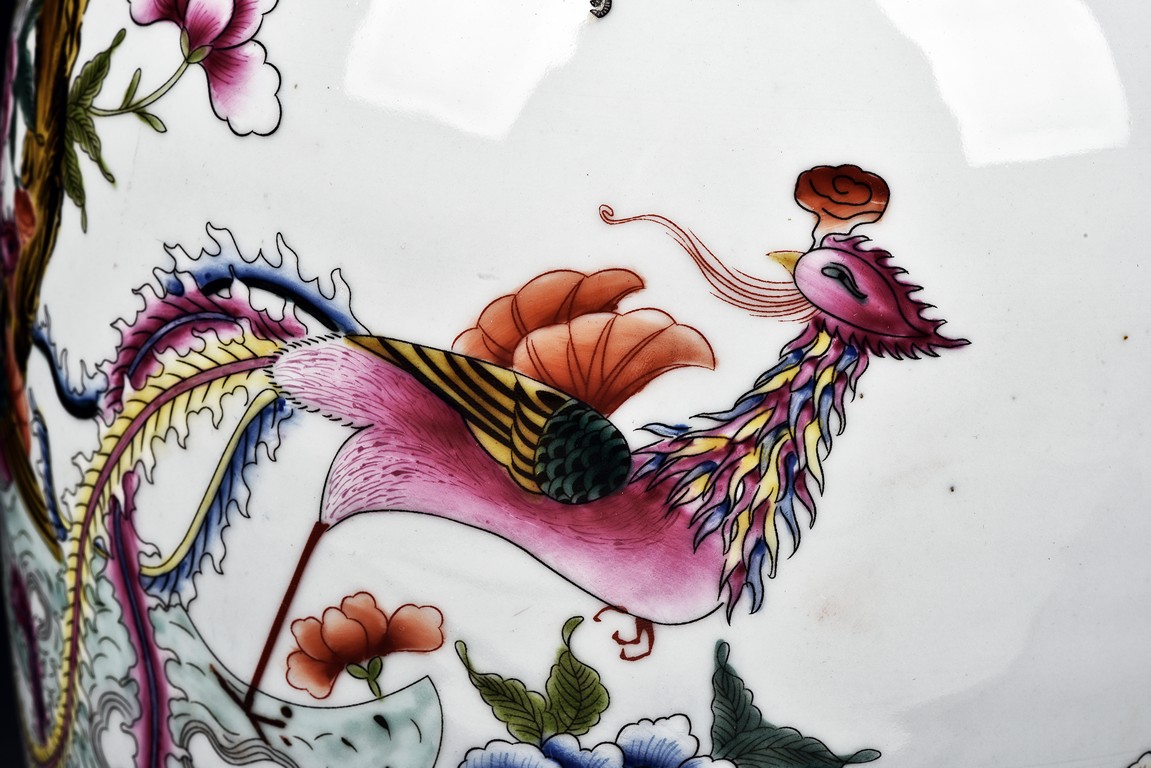Of baluster form, the body painted with the scene of phoenix and blossoming flowers, the bottom with six character mark.