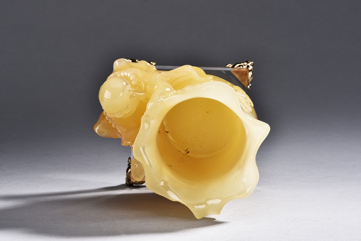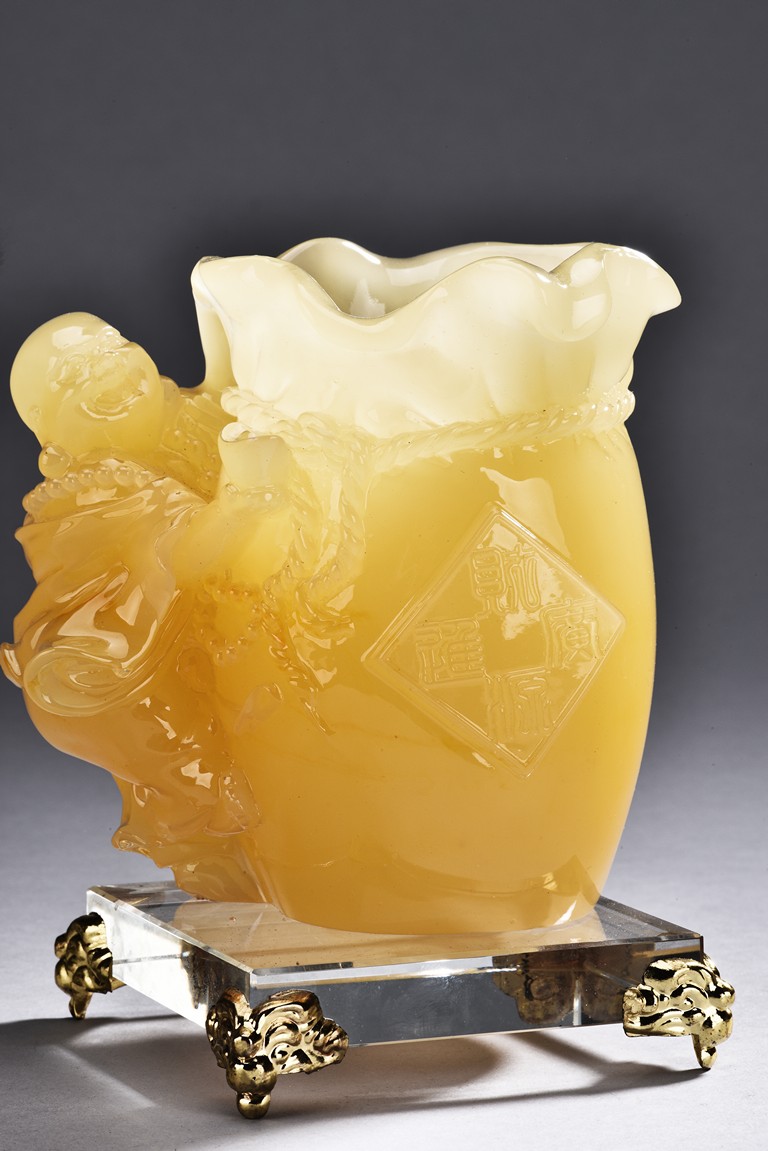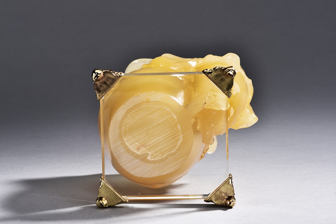 The teapot is of pear shape, the body in orange-red color, with round loop handle, slight S shaped spout, and domed finial, withl incised mark "Si Ting" below handle.