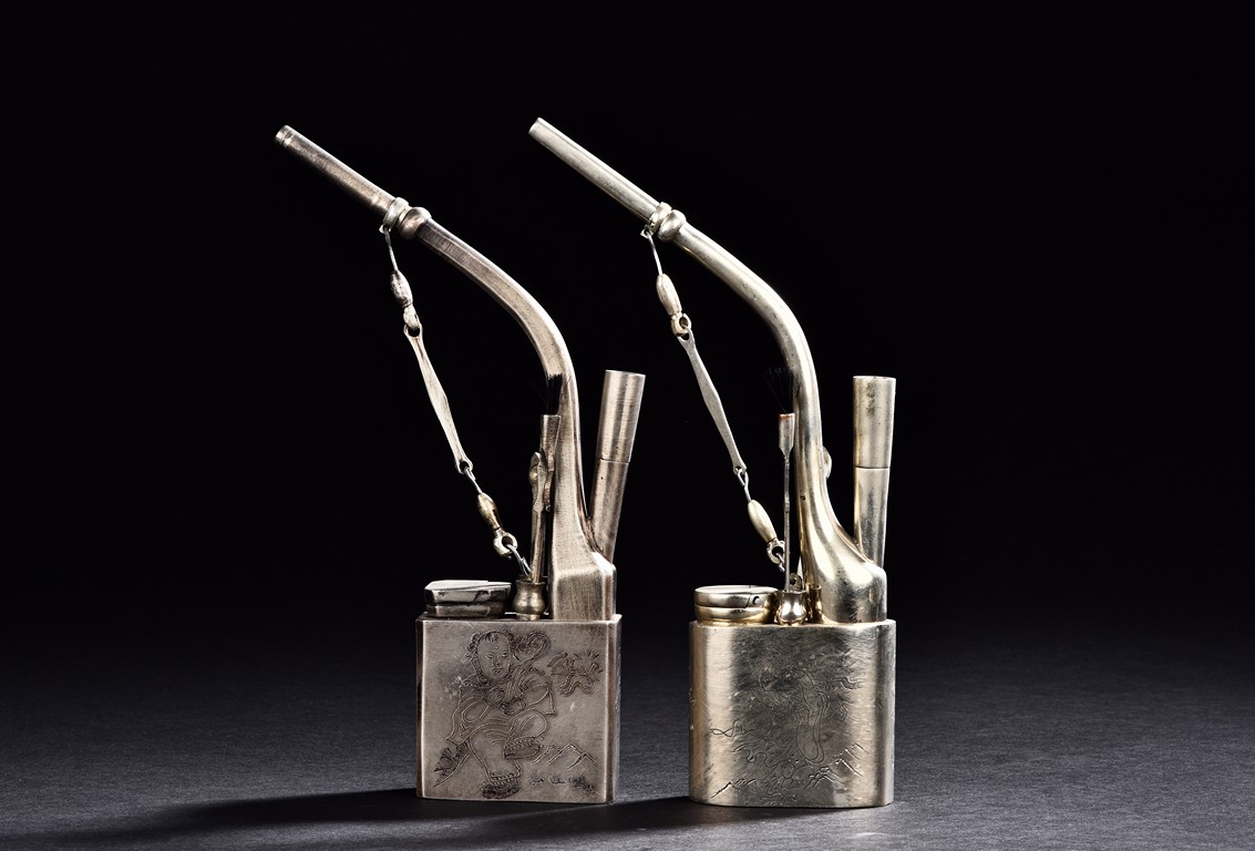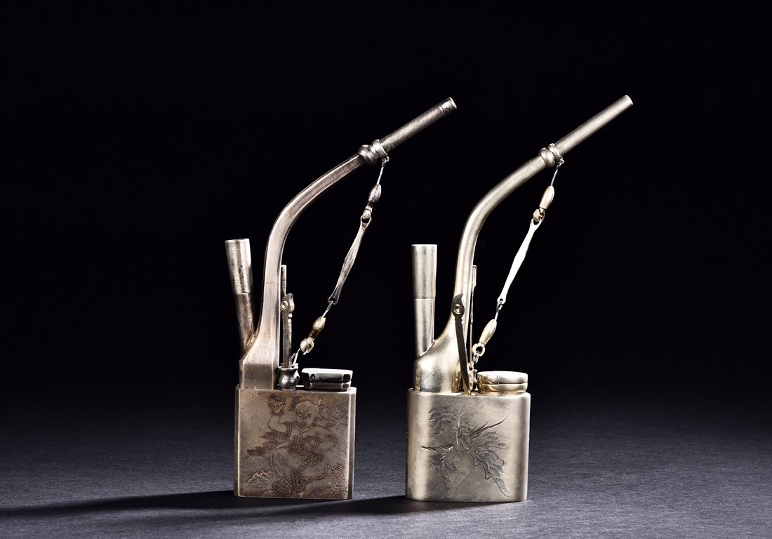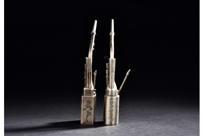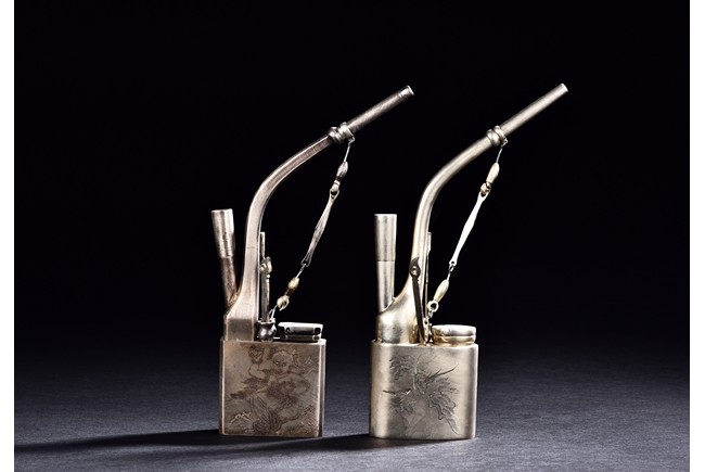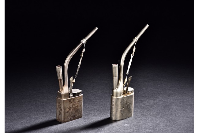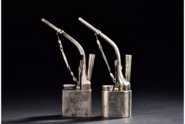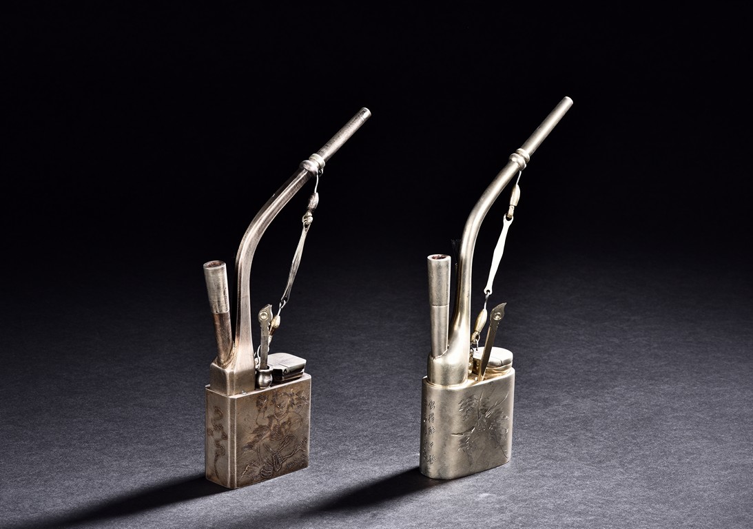 A GROUP OF TWO METAL OPIUM PIPES 鴉片煙管兩個