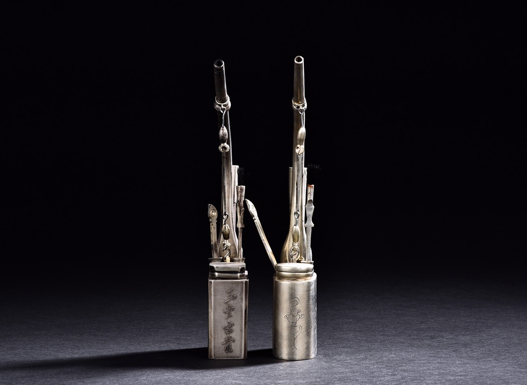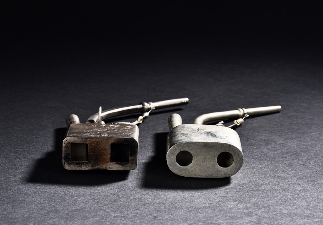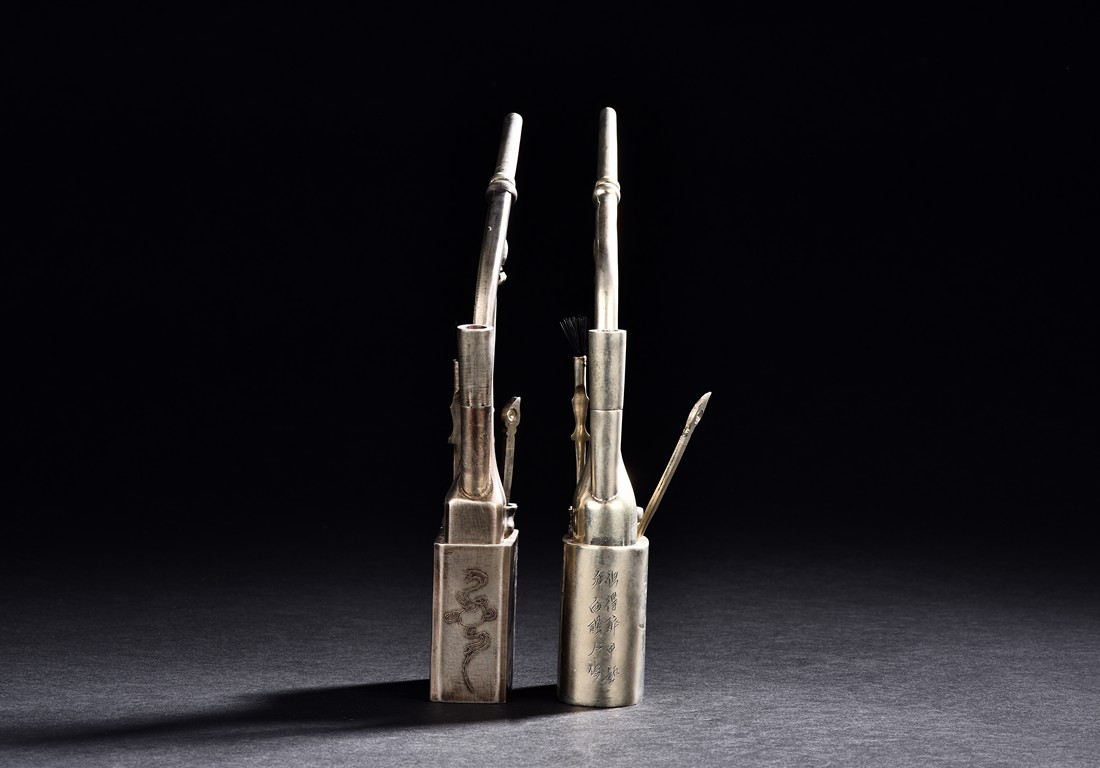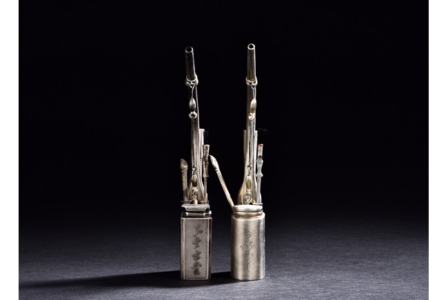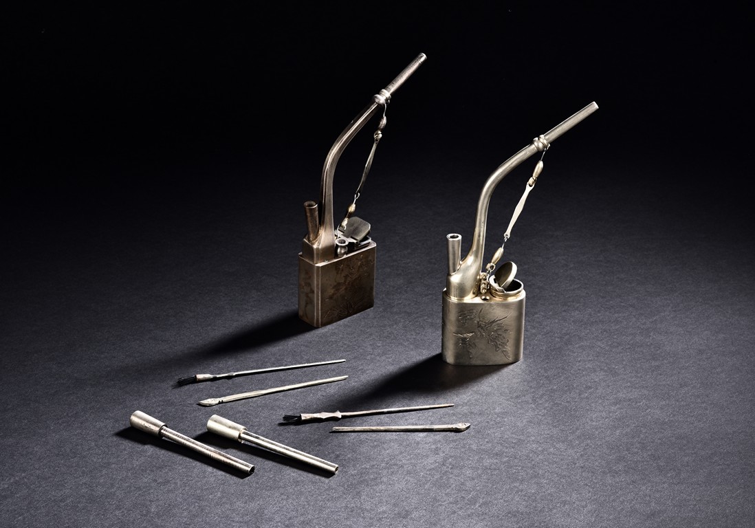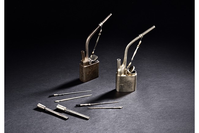 A GROUP OF TWO METAL OPIUM PIPES 鴉片煙管兩個